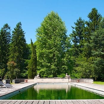 piscine, terrasse, prairie