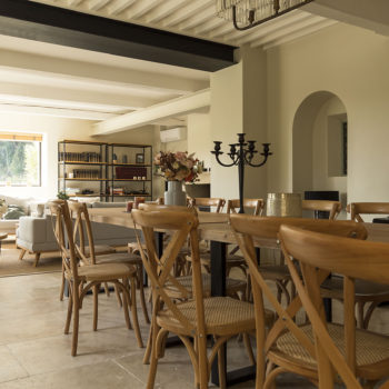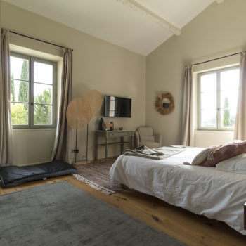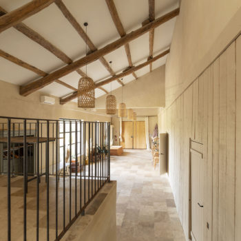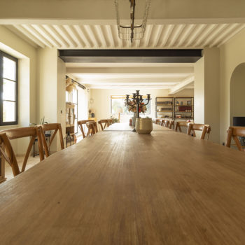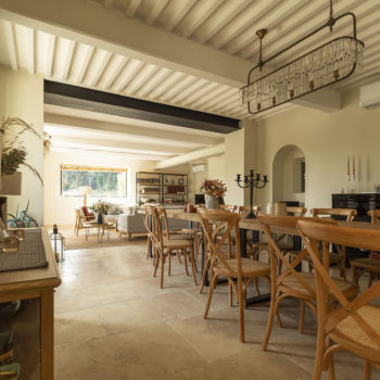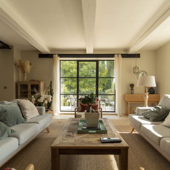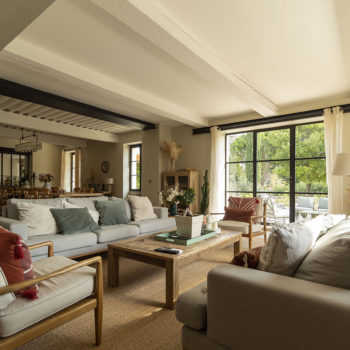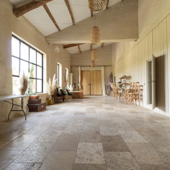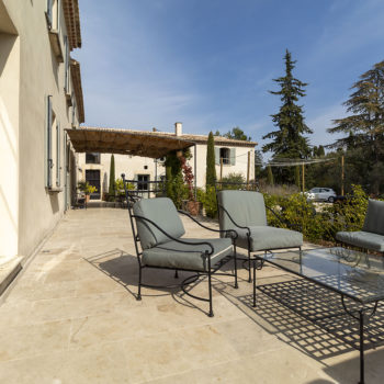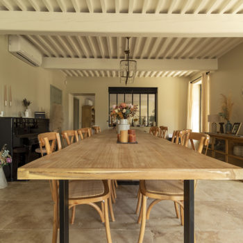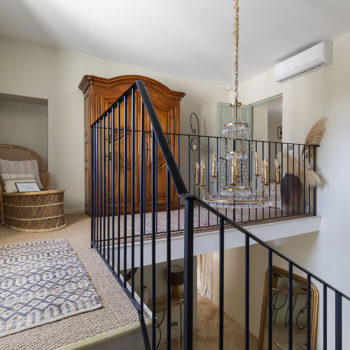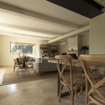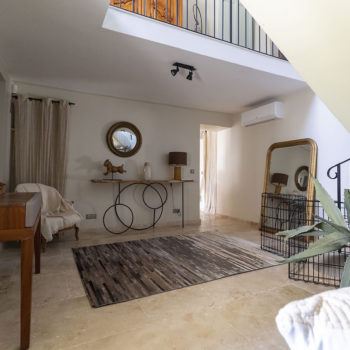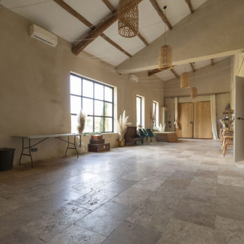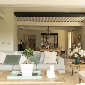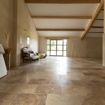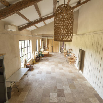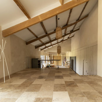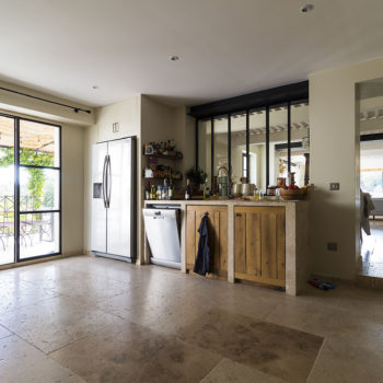carrelage/tomettes, hauteur sous plafond, cheminée, verrière / patio