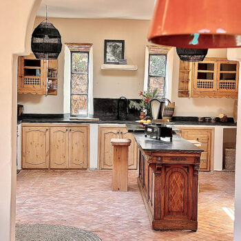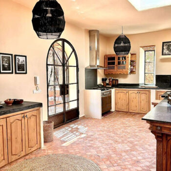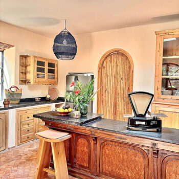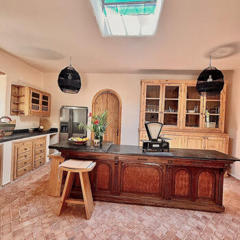 carrelage/tomettes, hauteur sous plafond, cheminée, verrière / patio, cuisine ouverte, baie vitrée, pierre
