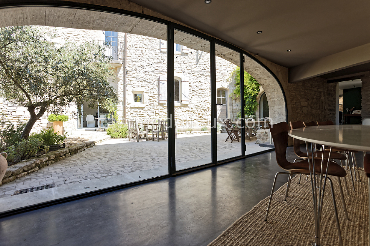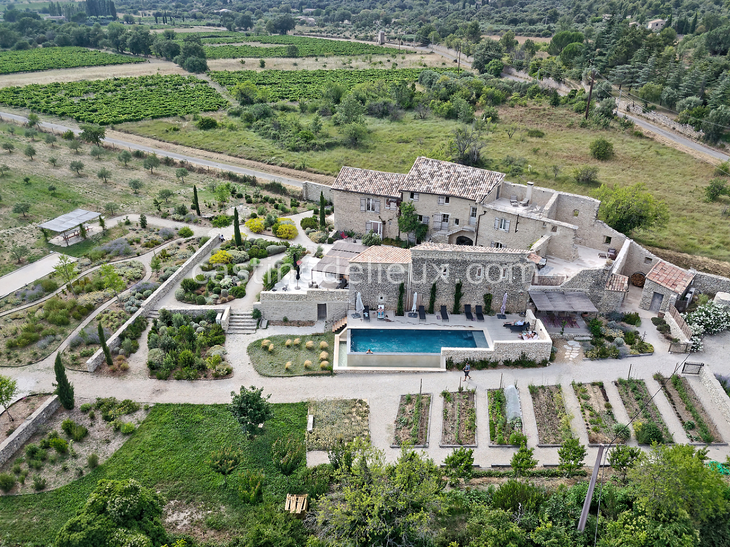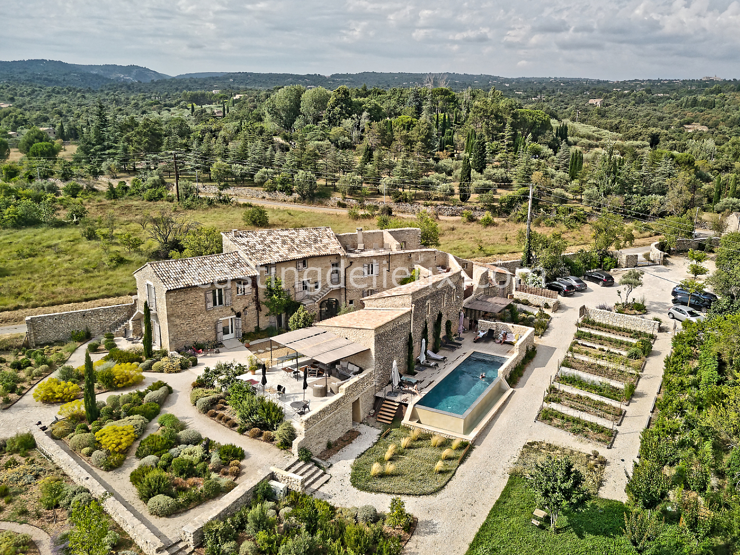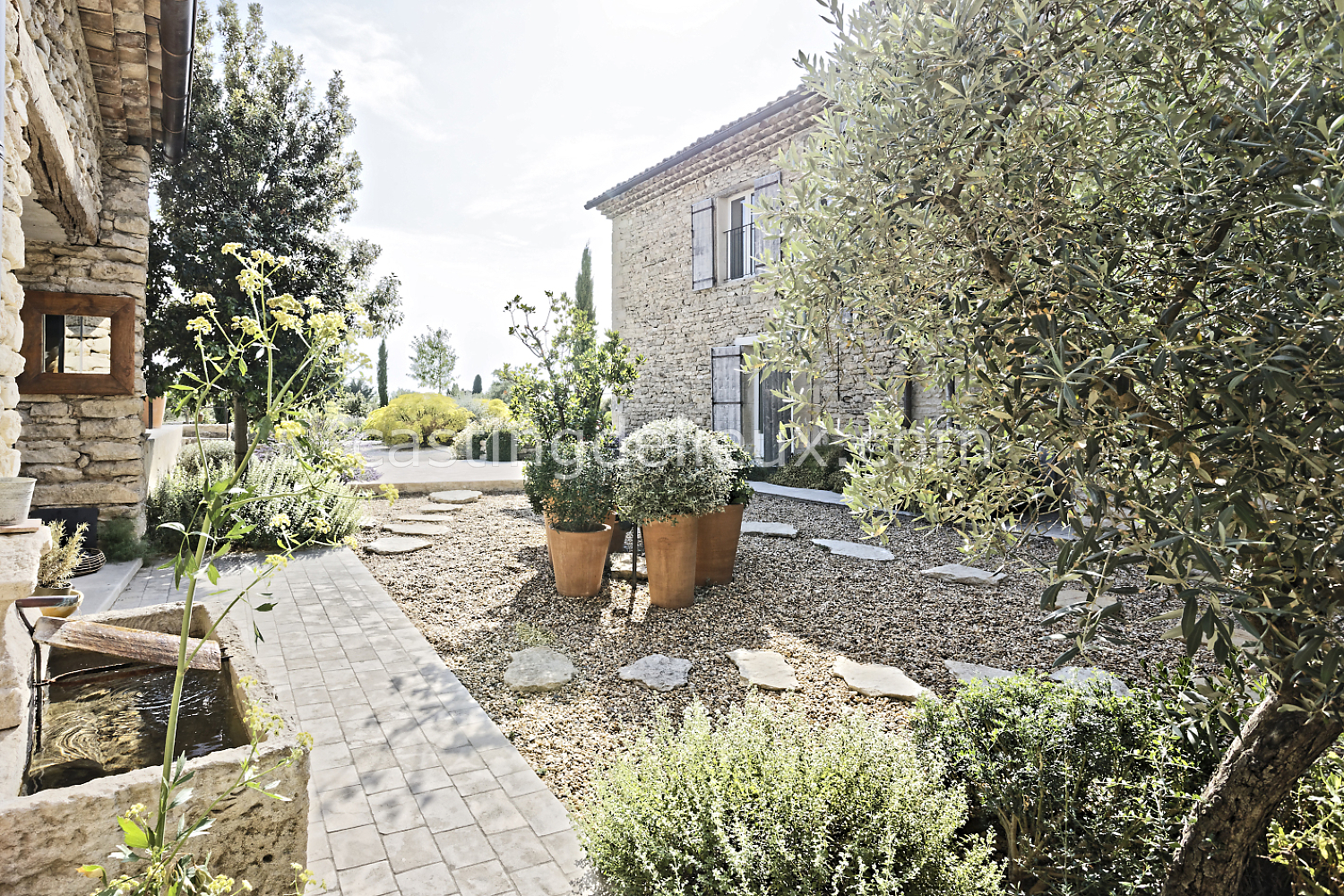 Mas rénové dans le Luberon, situé à Gordes, au cœur d’un environnement naturel préservé. La propriété développe environ 350 m² et s’ouvre sur un jardin et un champ d'oliviers de 15 000 m². Les intérieurs lumineux associent volumes ouverts, grandes baies vitrées et matériaux contemporains, tout en conservant le caractère provençal du lieu. Les extérieurs proposent plusieurs terrasses et une piscine à débordement, avec des vues dégagées sur les oliviers, les Alpilles et le Luberon.
