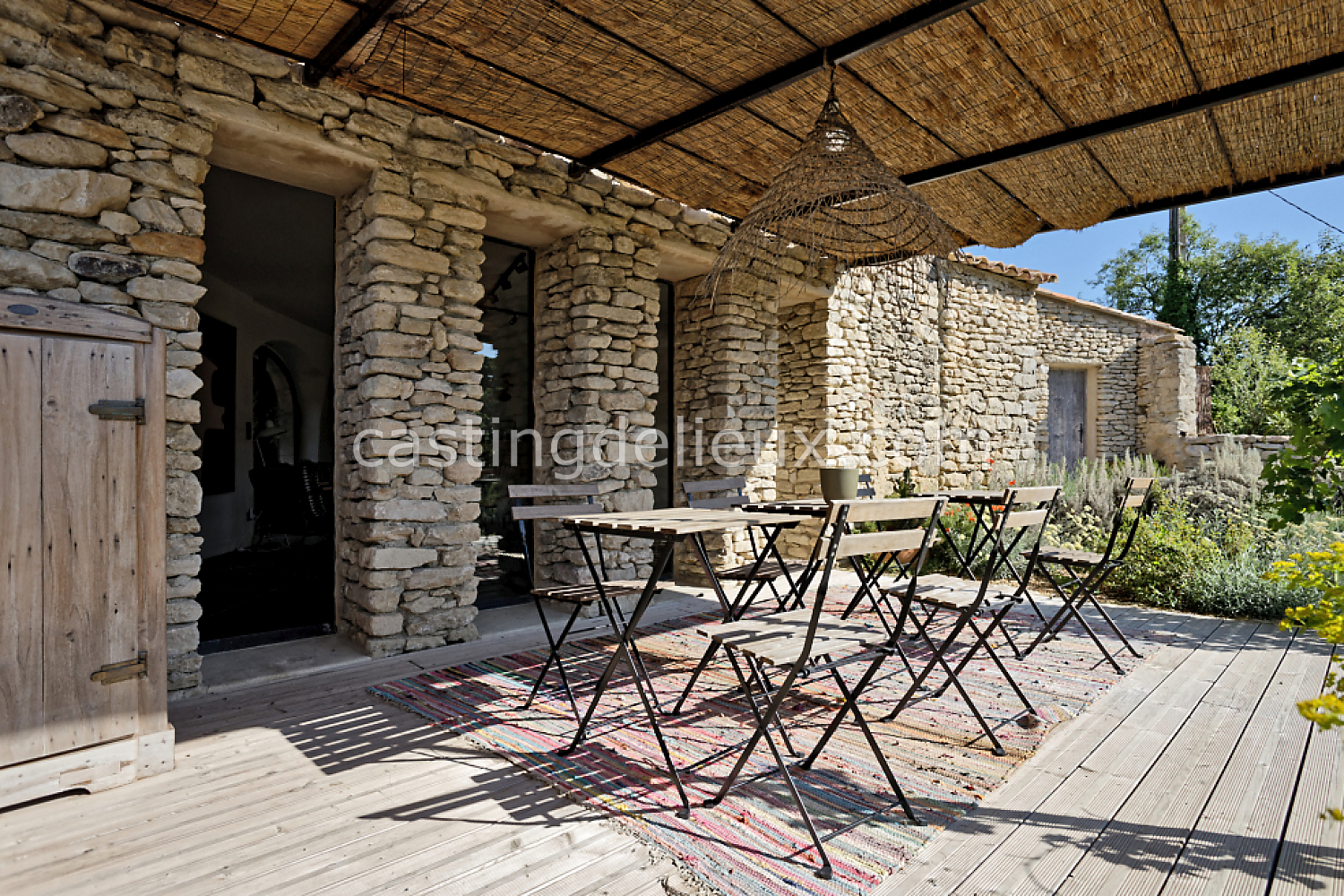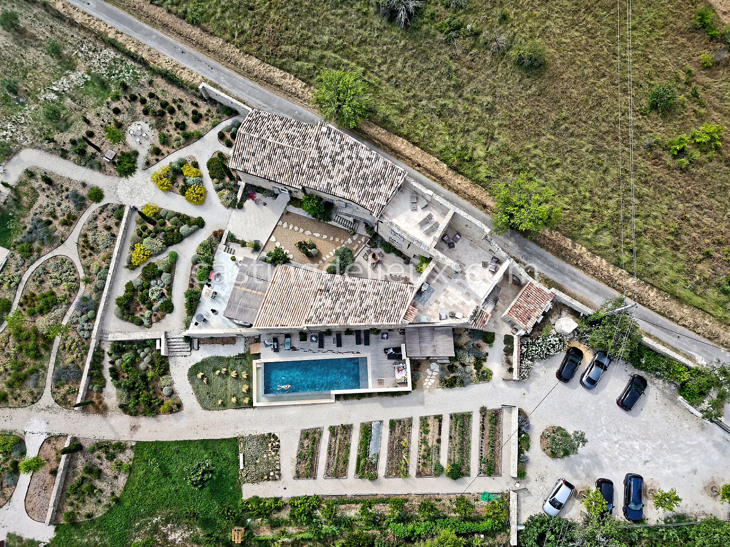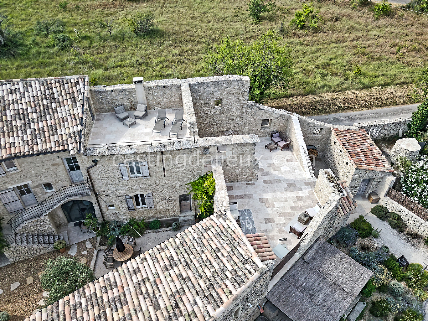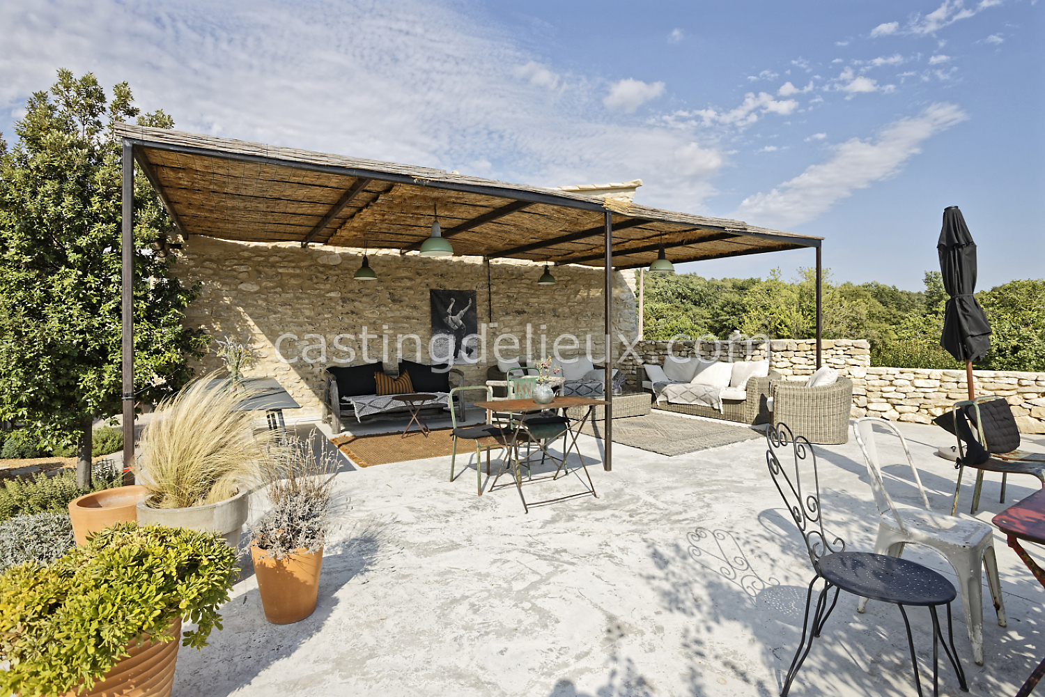 Mur de pierre, Piscine à débordement, Cour intérieure / Patio, Prairie / champ, Jardins potagers / vergers, Terrasse bois, Rooftop / toit-terrasse
