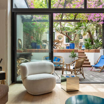 Appartement à Marseille, patio de 60m², séjour 65m² et deux chambres.