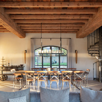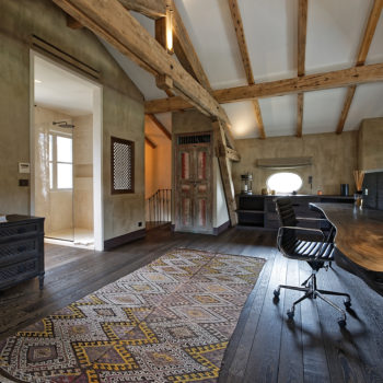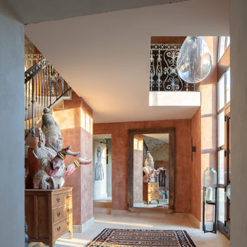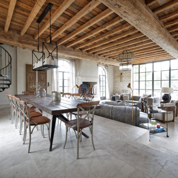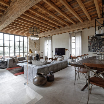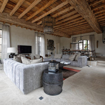 carrelage/tomettes, hauteur sous plafond, cheminée, verrière / patio