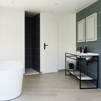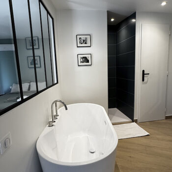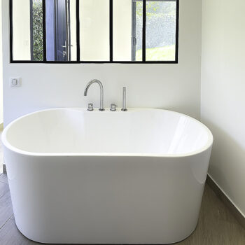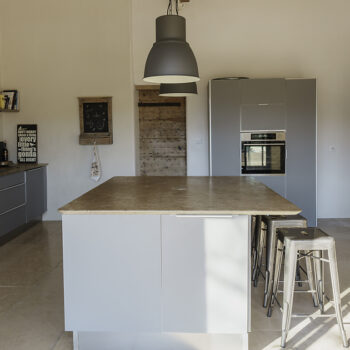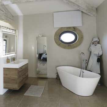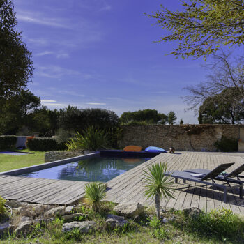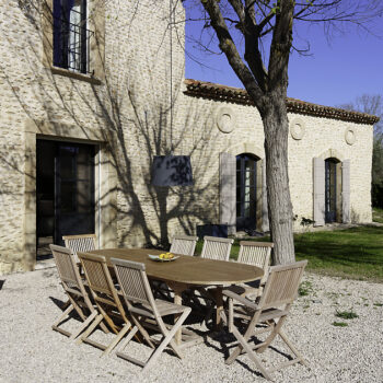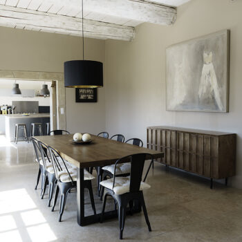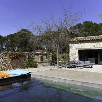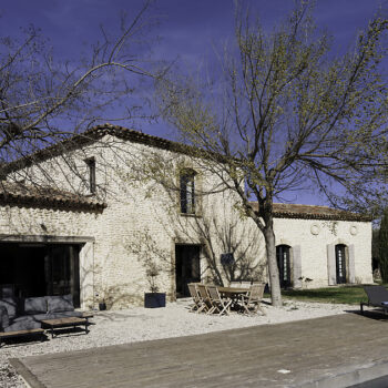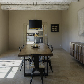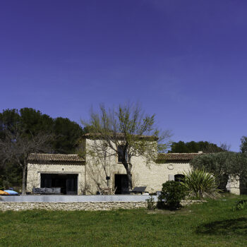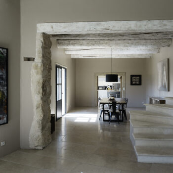 Maison provençale de style bastide avec pierres apparentes. Intérieur contemporain