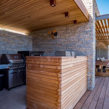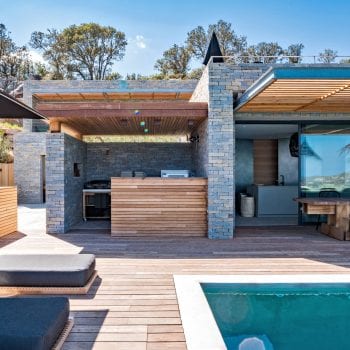 piscine, cuisine extérieure / pool house, terrasse bois
