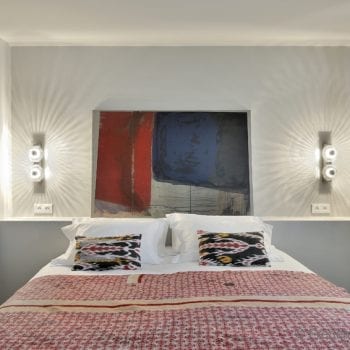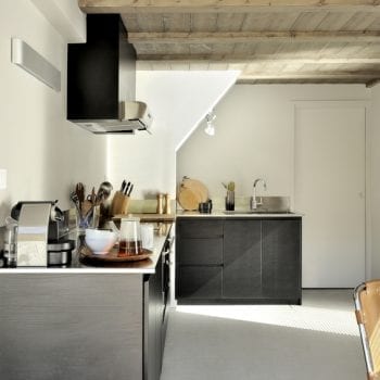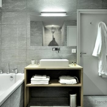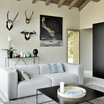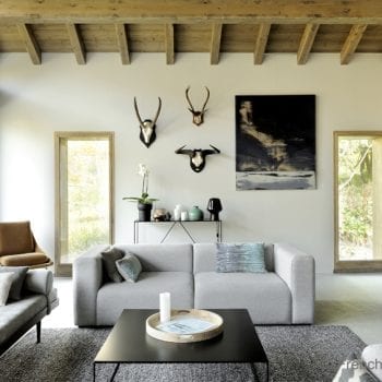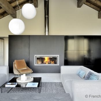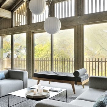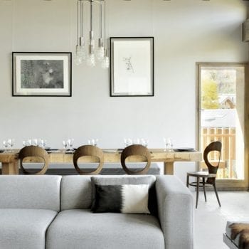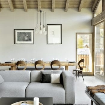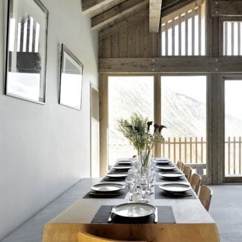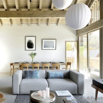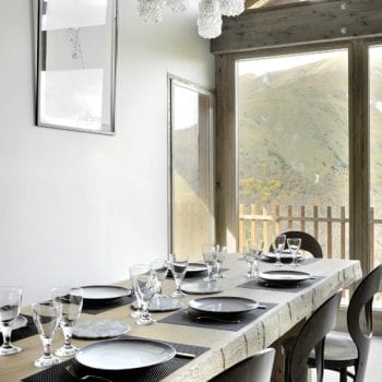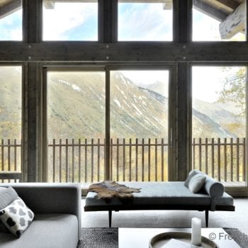 Chalet in the Vanoise massif. Very bright living rooms, combining light wood, white walls and with a neat, very contemporary furnishing and decoration. Bright, soberly furnished rooms.