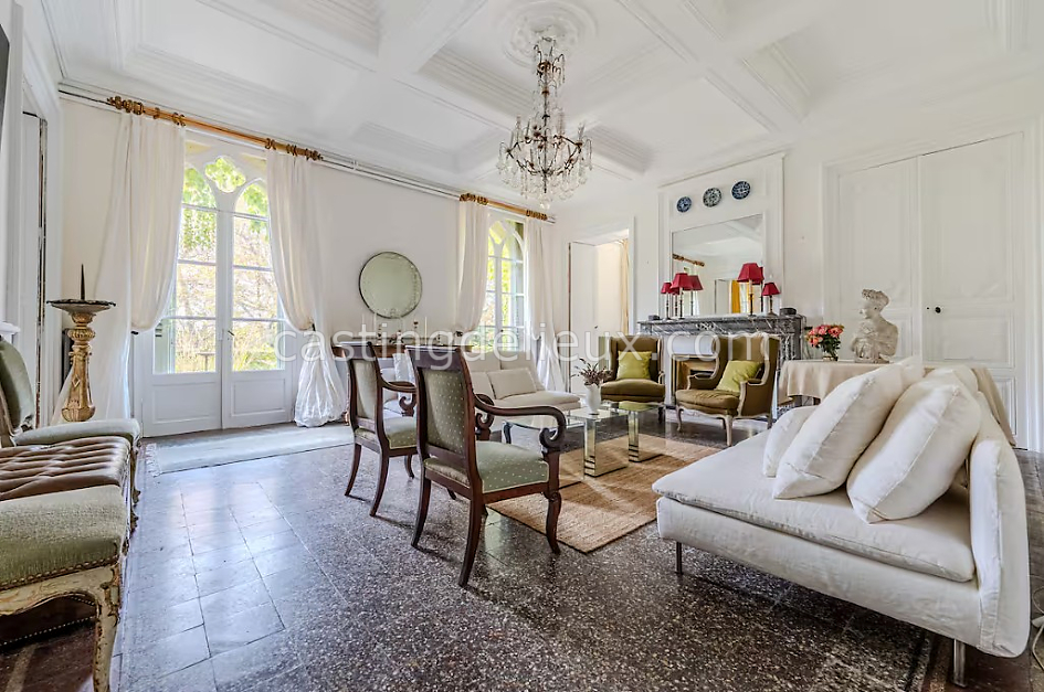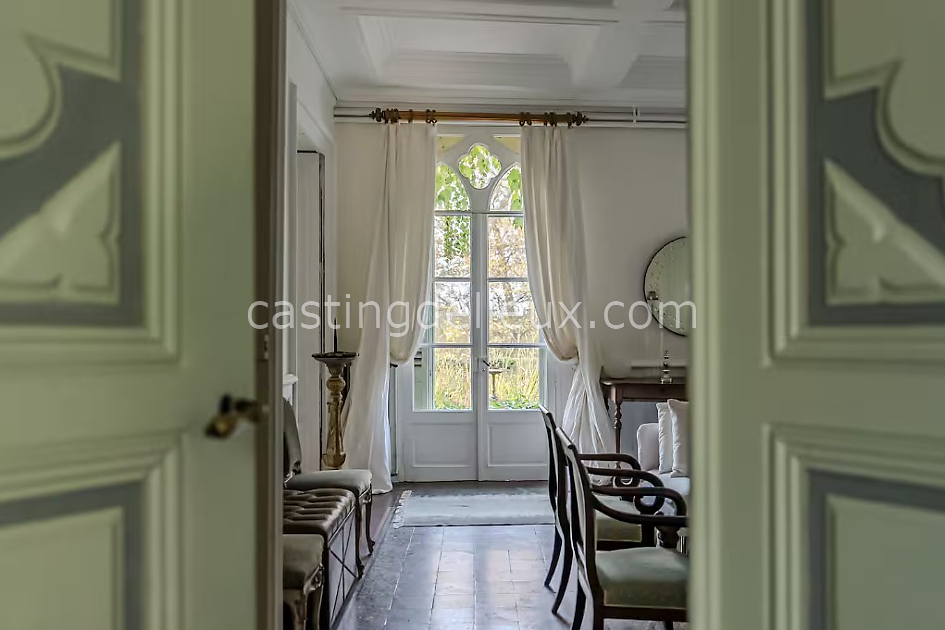 Grande demeure familiale du XVIIIᵉ siècle entourée d’un parc à la française de 4 hectares. Intérieurs spacieux, éléments architecturaux d’époque, piscine et dépendances. Idéal pour shootings et tournages.