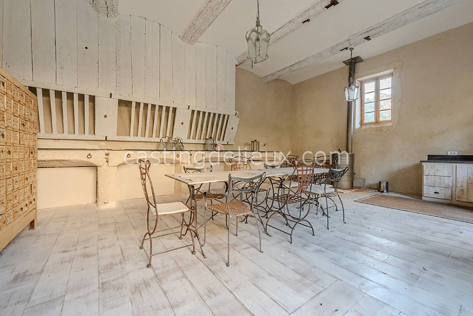 | Ambiance intérieure | Ambiance classique, Grande hauteur sous plafond, Tomettes / carrelage ancien, Moulures, Cheminée, Escalier remarquable, Ambiance rustique, Cuisine ouverte, Bibliothèque |
