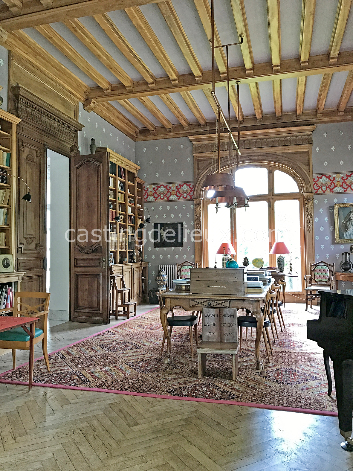 Ambiance classique, Grande hauteur sous plafond, Verrière / baie vitrée, Mur coloré / accent wall, Moulures, Escalier remarquable, Déco vintage, Bibliothèque