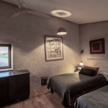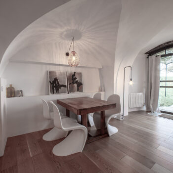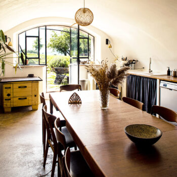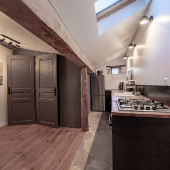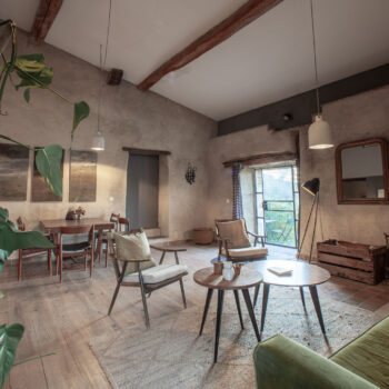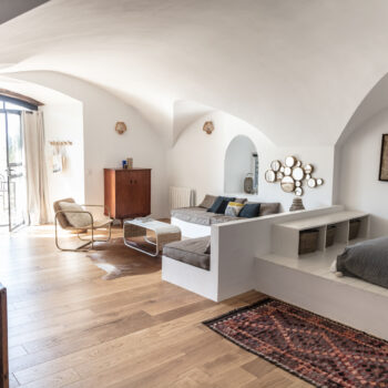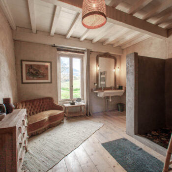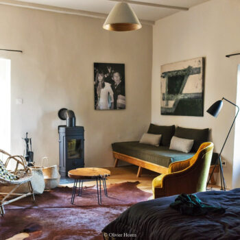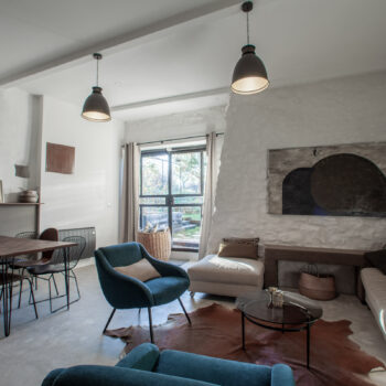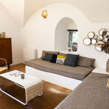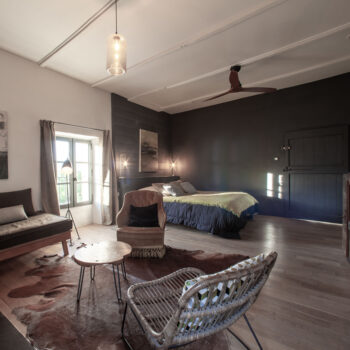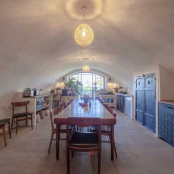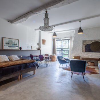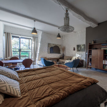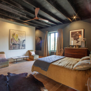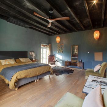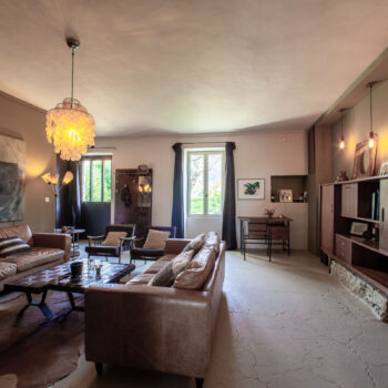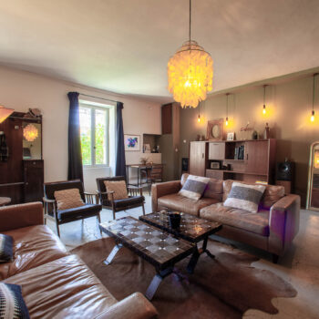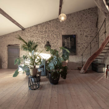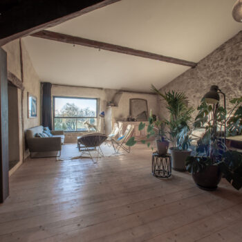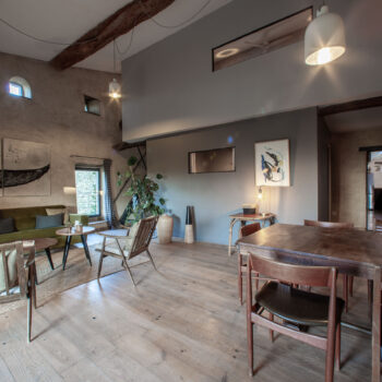 Les pièces sont grandes : cuisine vouté 40m², salon bas 30m², salon haut 50m², l’Atelier 40m², la Bergerie 50m², les chambres entre 23 et 33m²