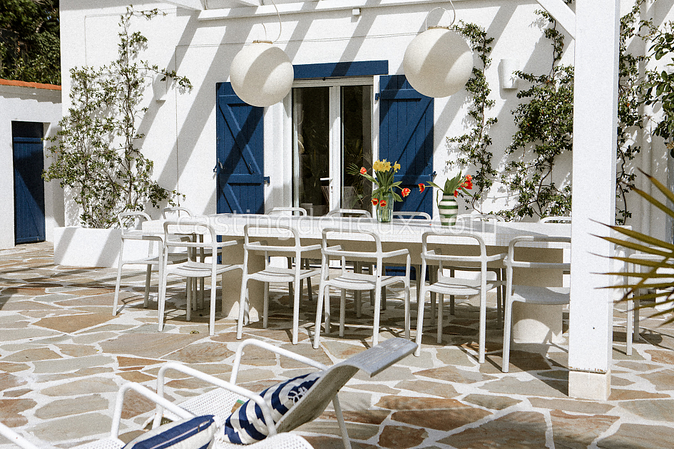 Bord de mer, En village, Piscine traditionnelle, Terrasse carrelée / pierre