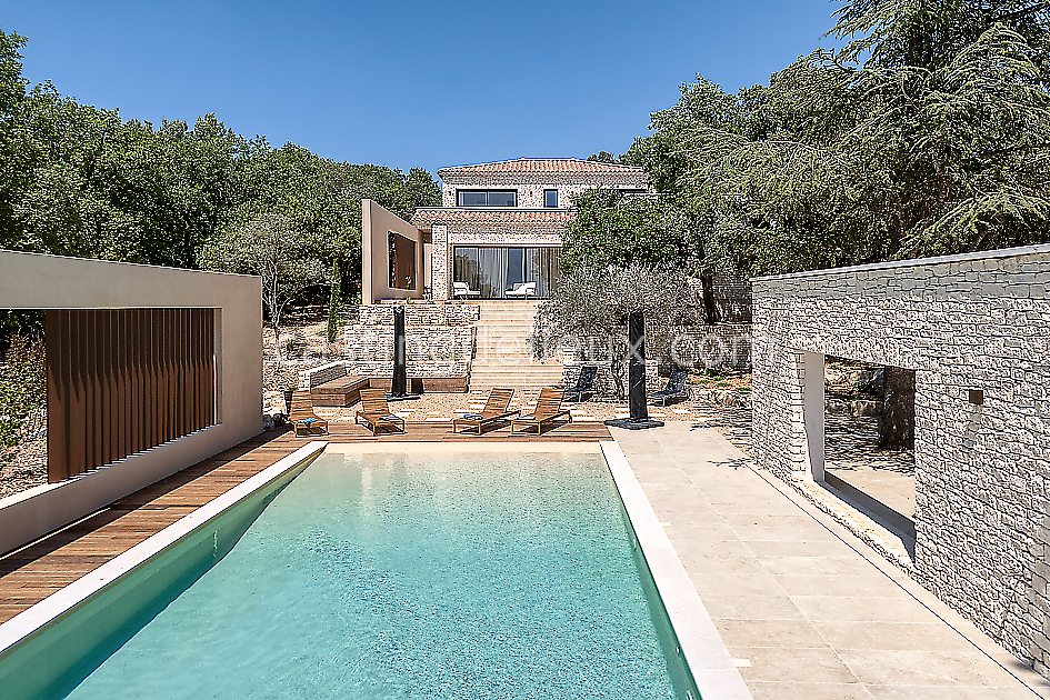 Villa d’architecte alliant ancien et très moderne, 4 suites avec SDB et WC, une dépendance pool house avec cuisine et SDB
