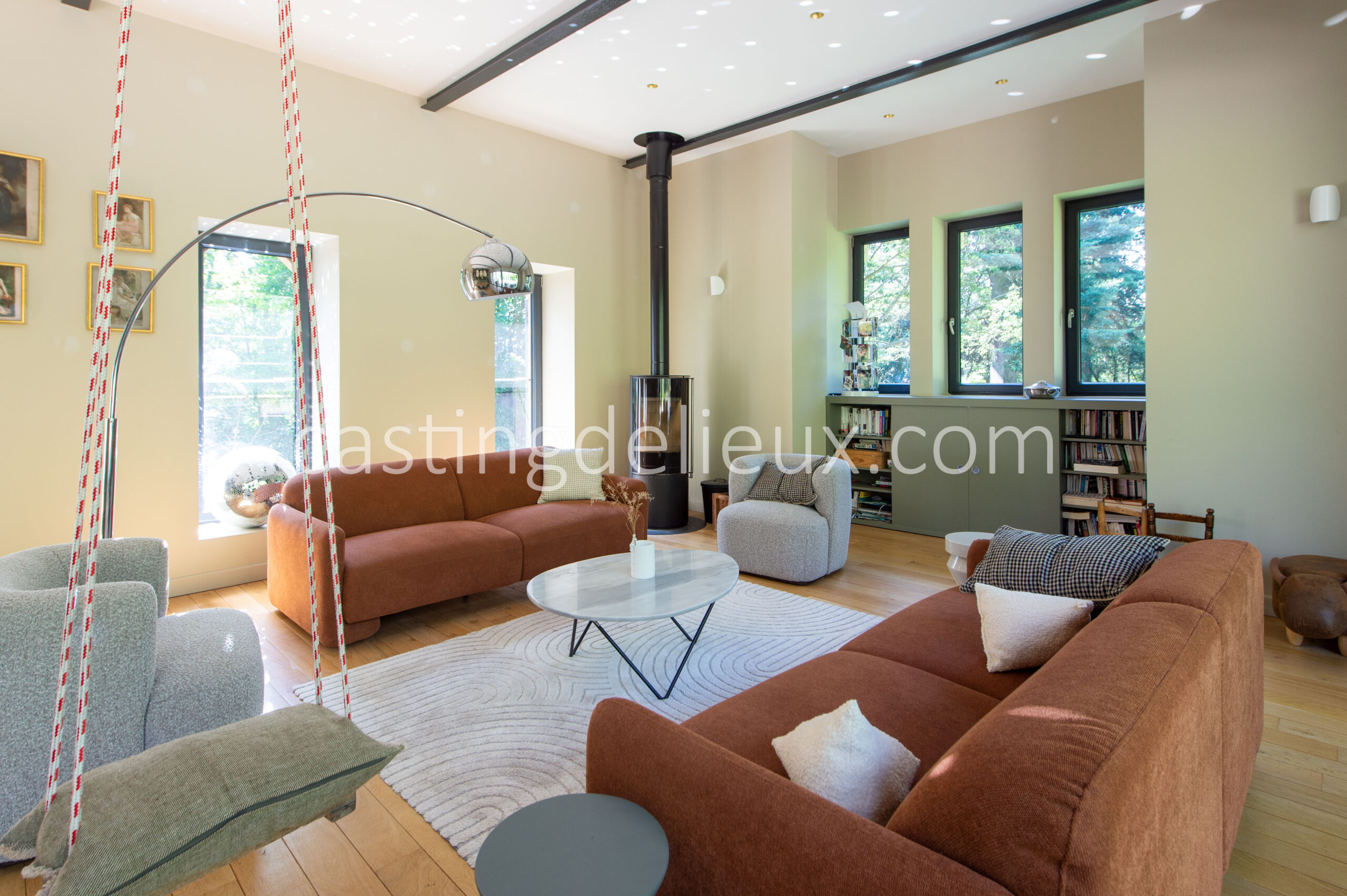 | Ambiance intérieure | Sol bois / parquet, Murs blancs / Enduits naturels, Cheminée, Déco contemporaine |