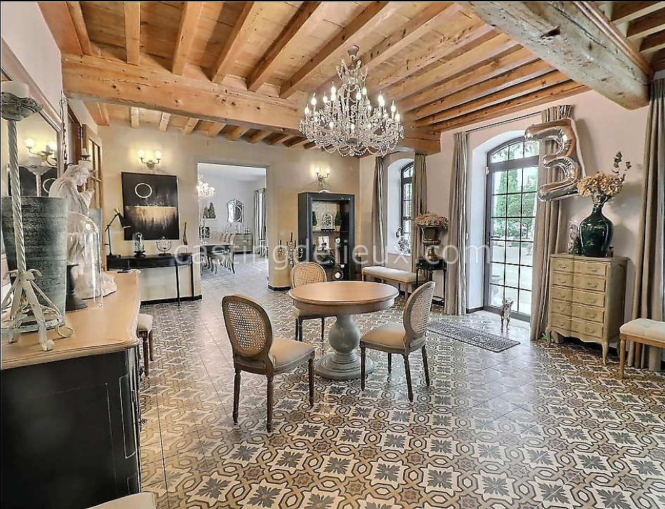 | Ambiance intérieure | Ambiance classique, Verrière / baie vitrée, Pierre apparente, Sol bois / parquet, Tomettes / carrelage ancien, Cheminée, Charpente / poutres apparente, Ambiance rustique |