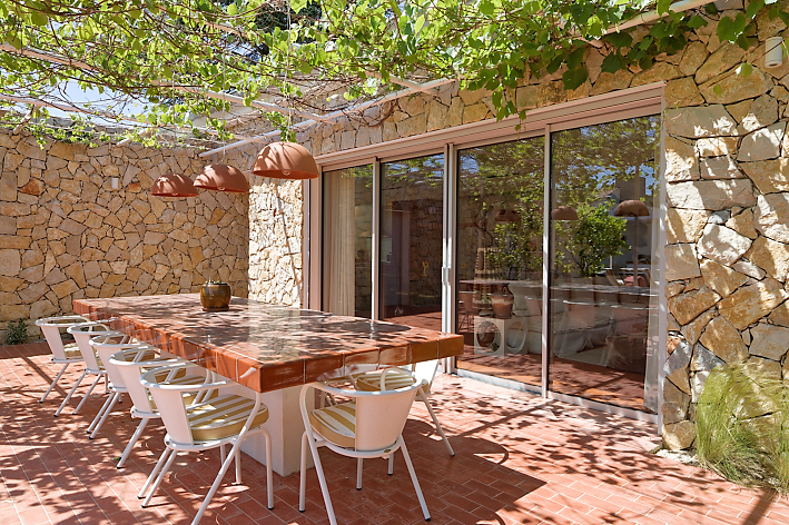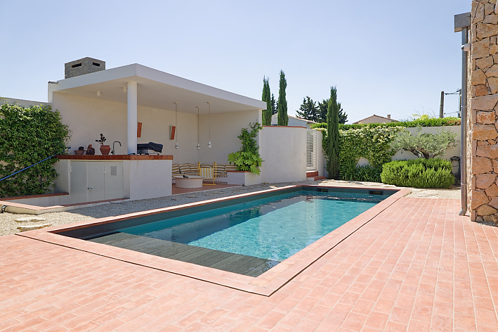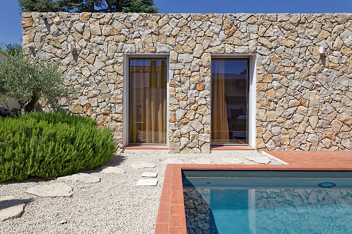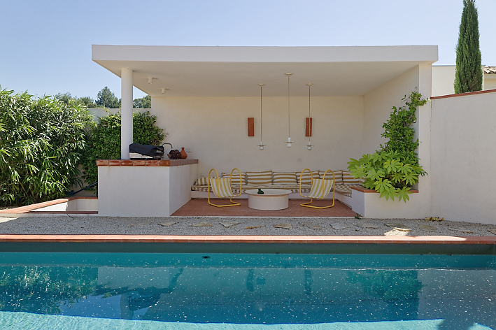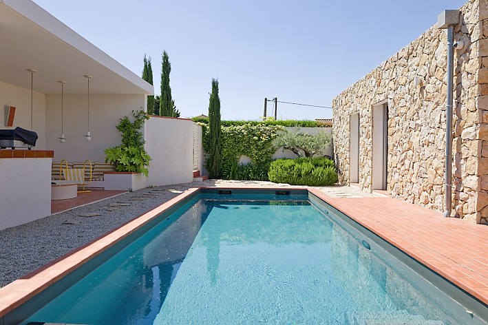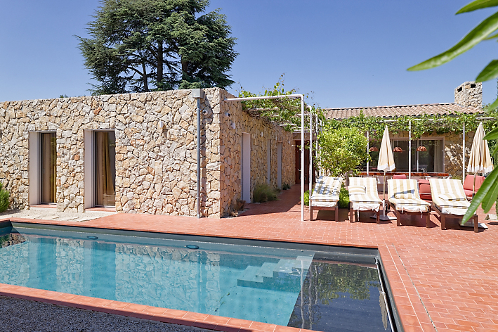 | Environnement extérieur | Mur de pierre, Pool house / Cuisine d’été, En village, Piscine traditionnelle, Terrasse carrelée / pierre, Terrasse couverte / pergola |