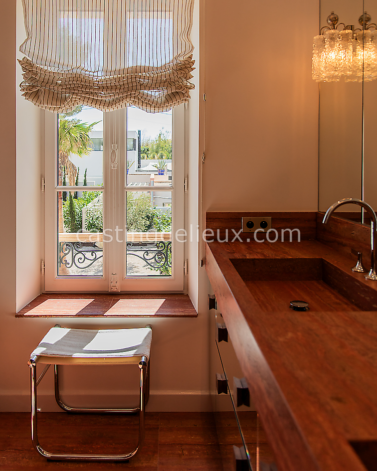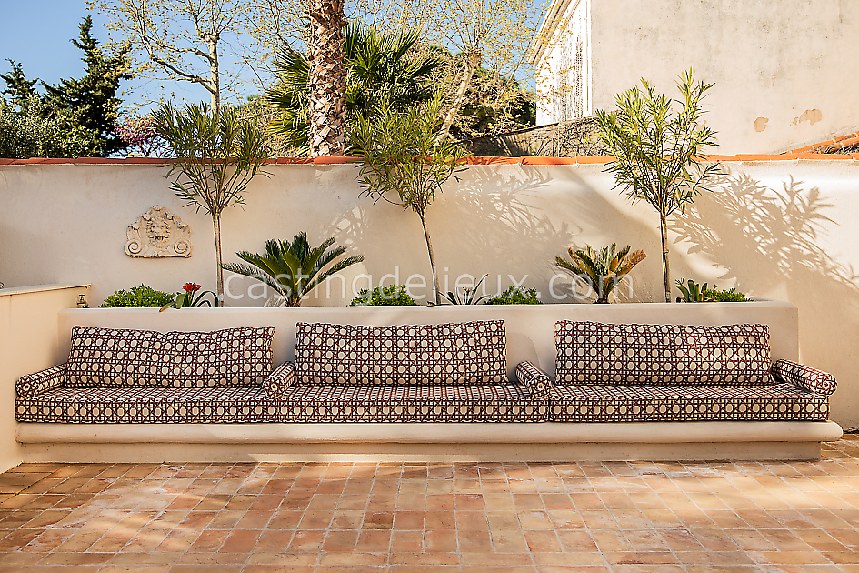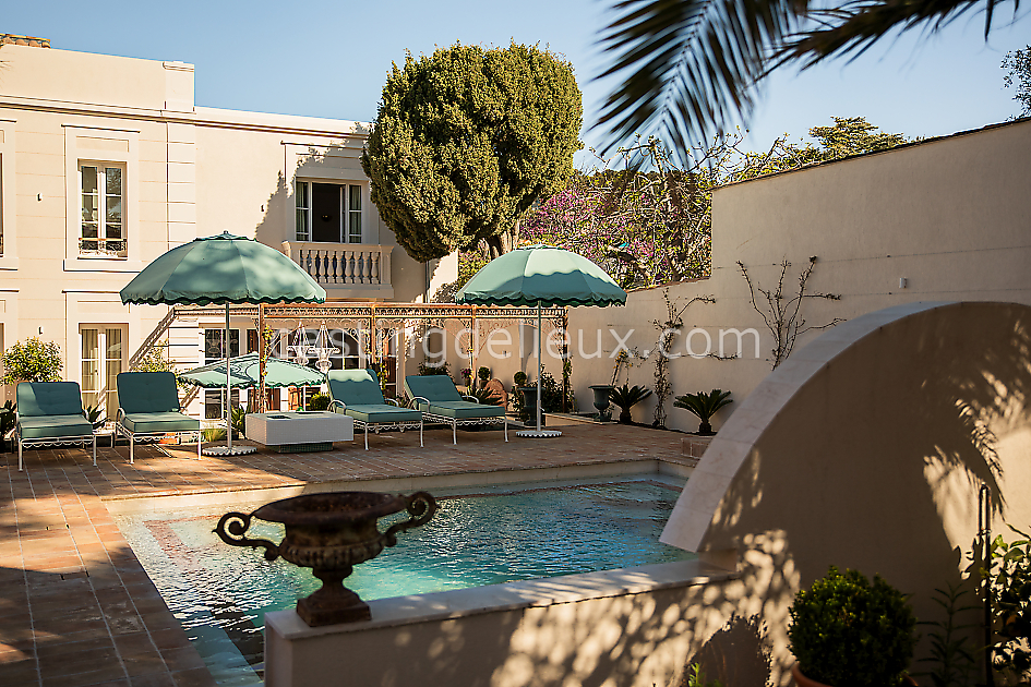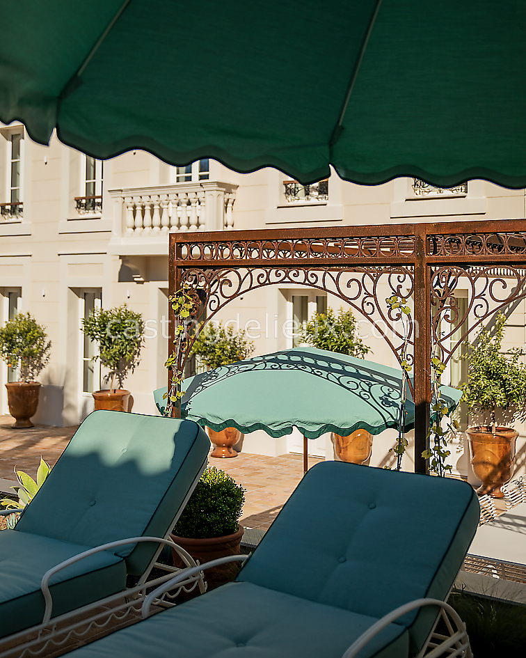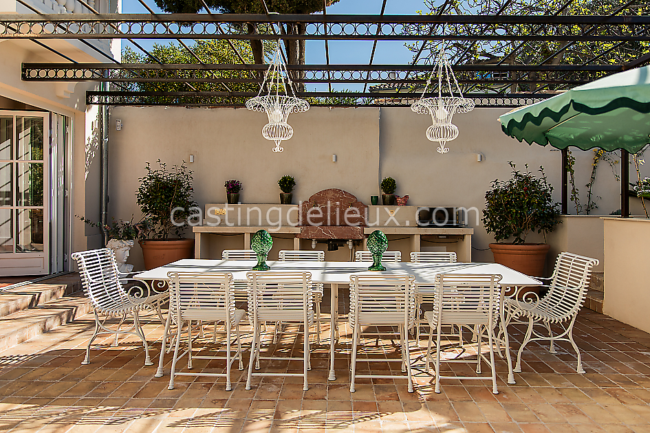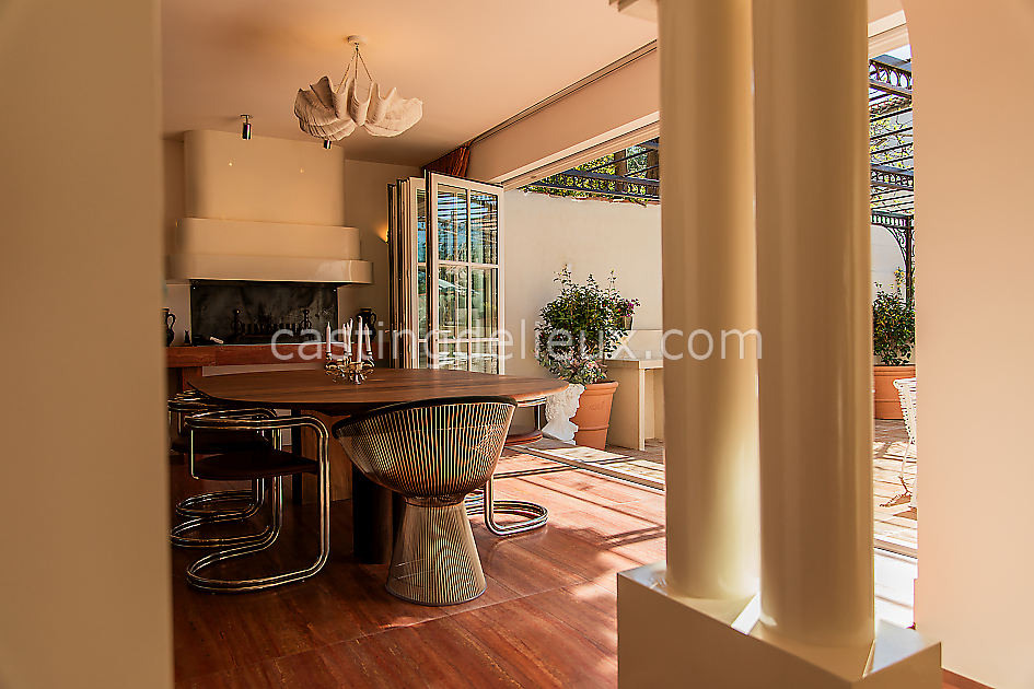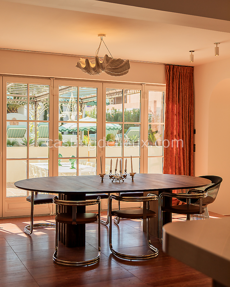 Quatre chambres en suite, deux salons, grande cuisine avec cheminée, piscine, spa avec sauna, hammam et salle de sport, toit-terrasse vue mer, cuisine d’été et accès direct à la Méditerranée.