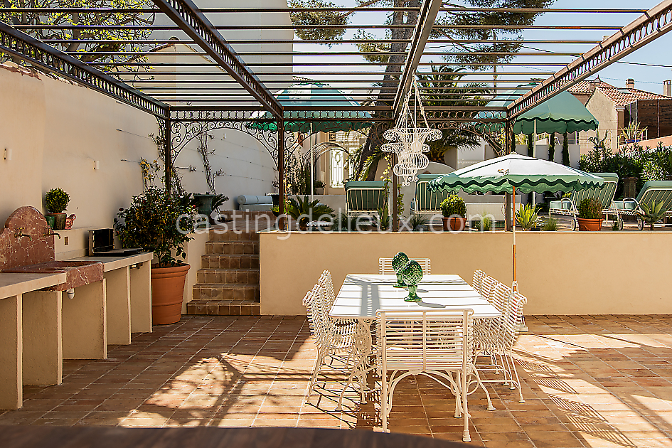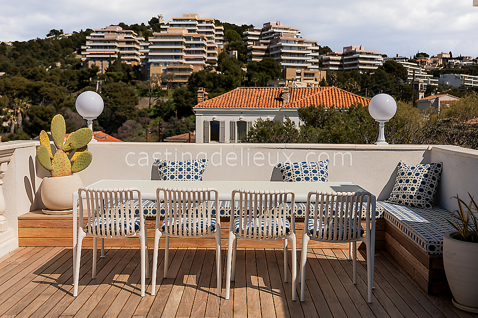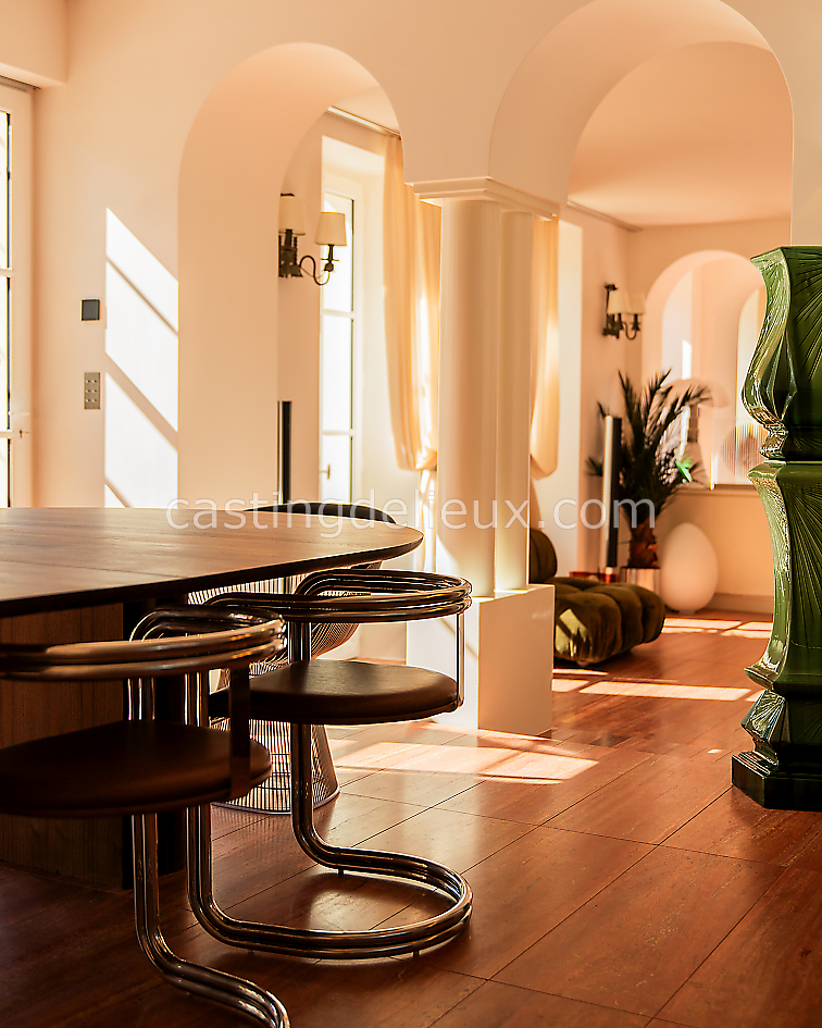 Grande maison de ville de 300 m² à Marseille (13), avec toit‑terrasse vue mer, piscine, spa (sauna, hammam) et salle de sport. Elle comprend quatre chambres en suite, deux salons, une cuisine de 70 m² avec cheminée, et un jardin/terrasse de 600 m². Idéal pour shootings mode, mobilier ou lifestyle dans un décor urbain‑mer haut de gamme.