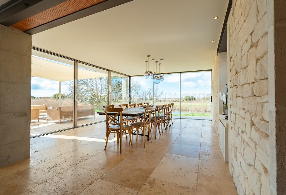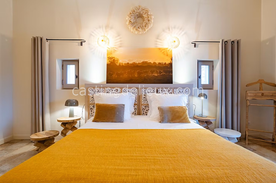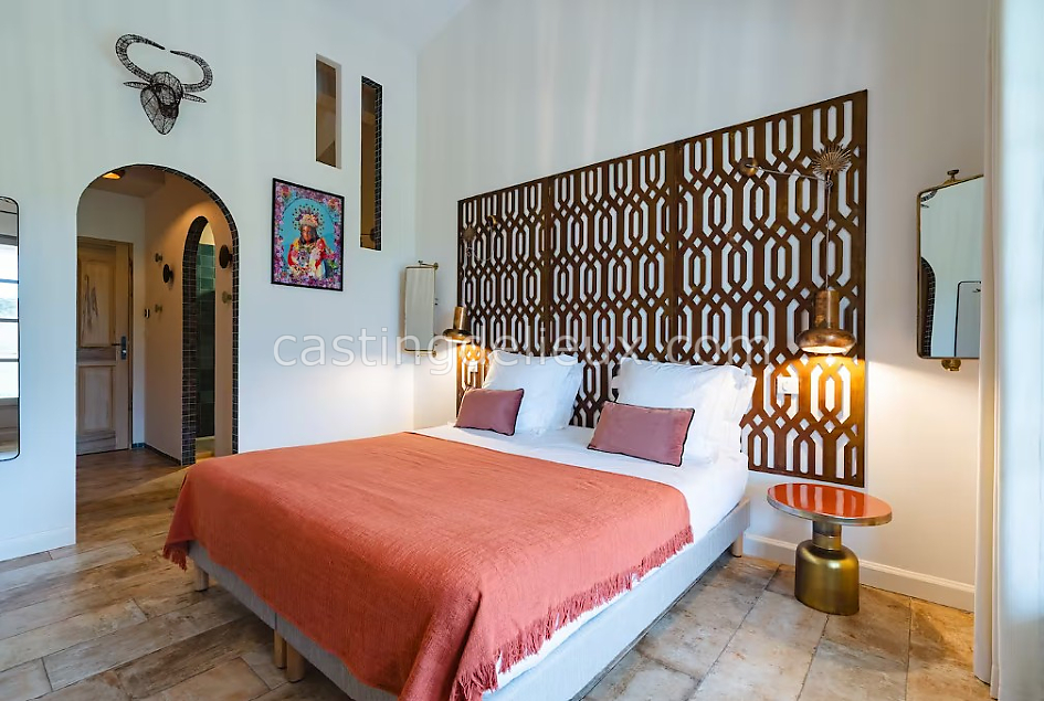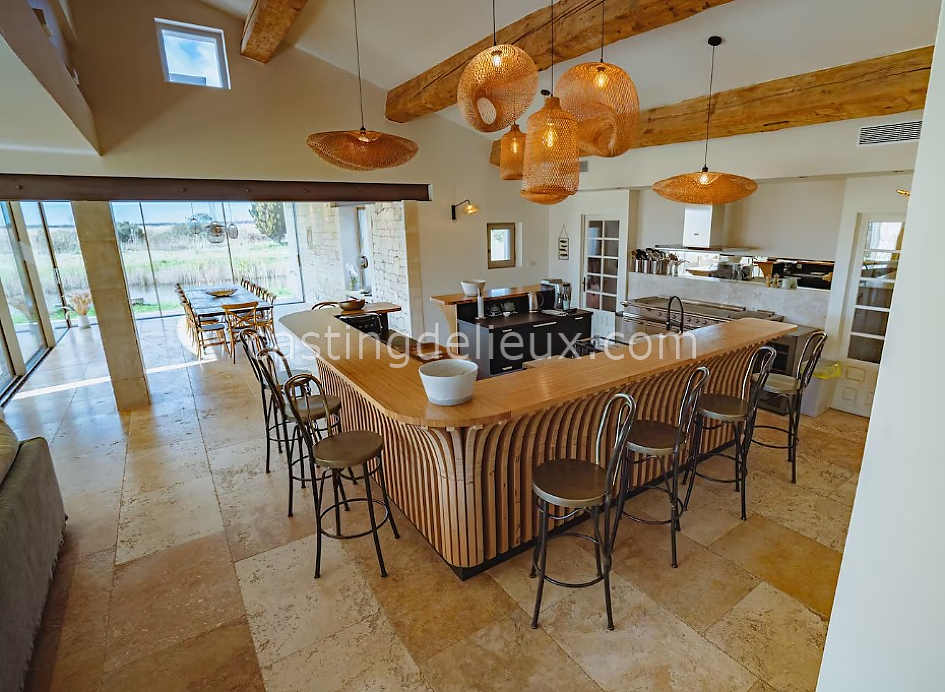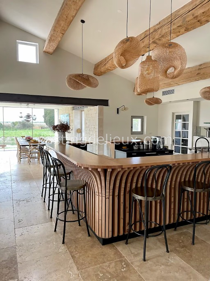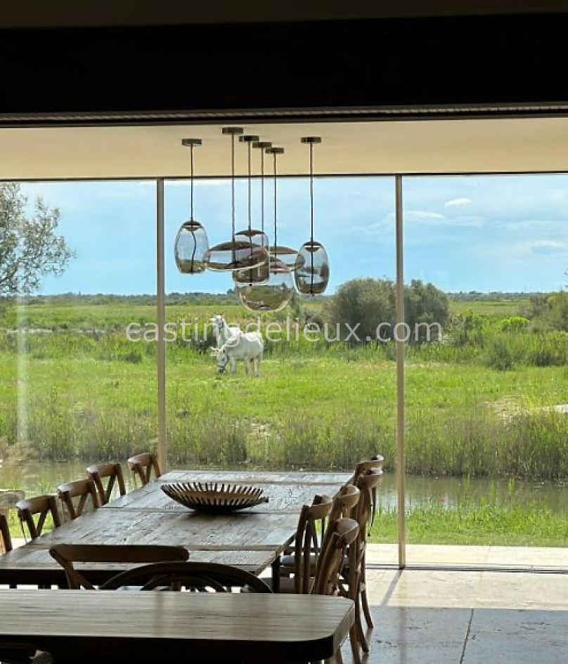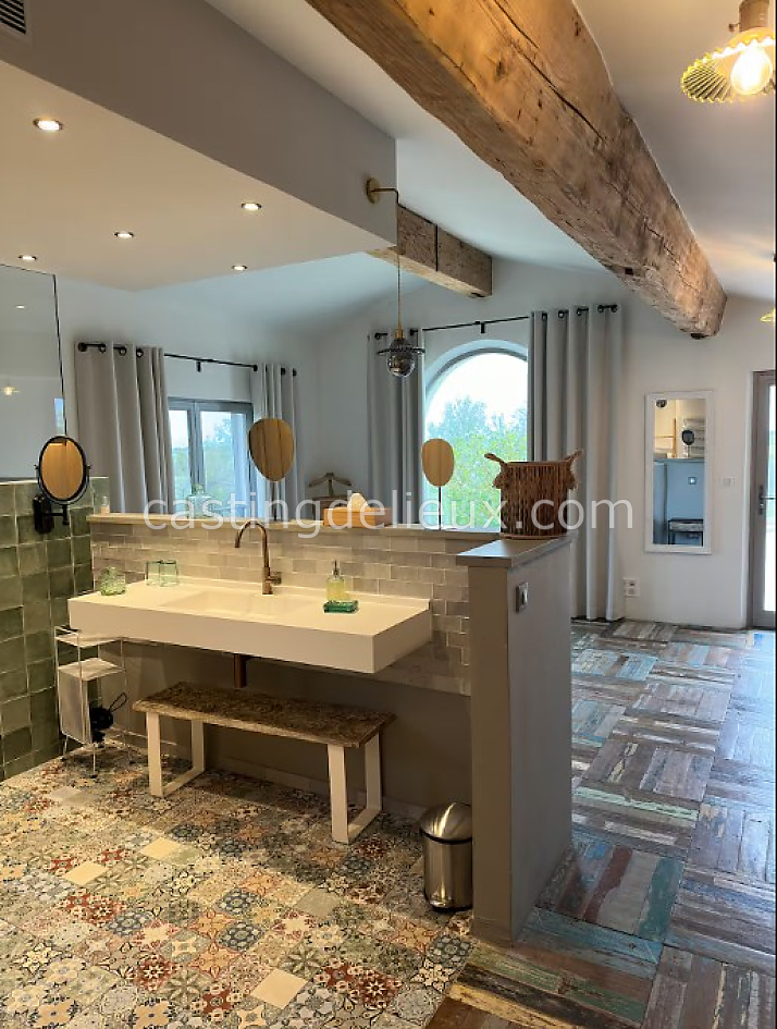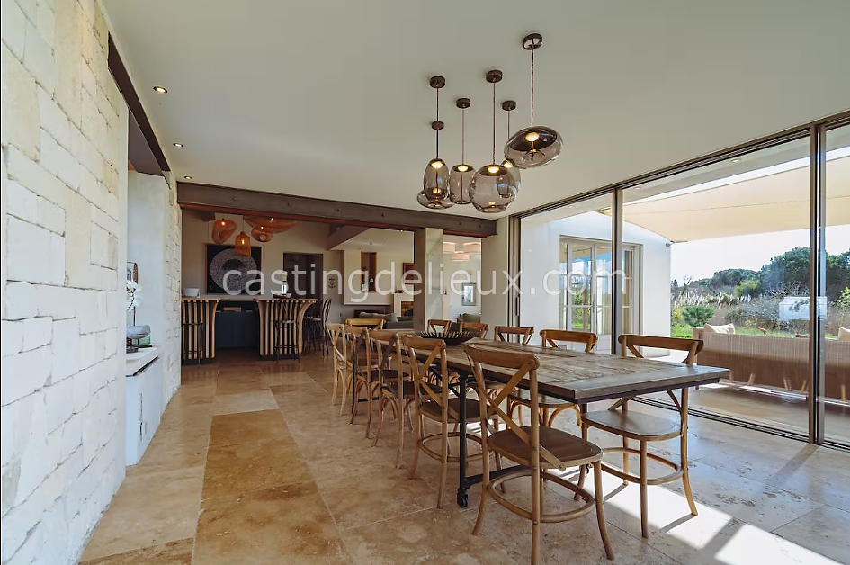 L’architecture mêle lignes épurées et matériaux naturels, offrant des volumes lumineux et un style contemporain sobre. Les espaces intérieurs totalisent 270 m² et s’articulent autour d’un vaste séjour traversant, d’une cuisine ouverte entièrement équipée et de cinq chambres spacieuses. Le mas s’ouvre sur de larges terrasses, une piscine entourée de nature et un environnement totalement préservé, sans vis-à-vis. L’ensemble constitue un cadre authentique, élégant et modulable, parfaitement adapté aux productions photo recherchant atmosphère naturelle, lumière douce et décors minimalistes.