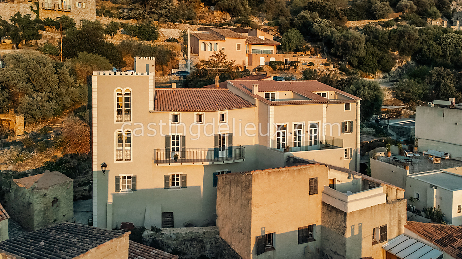 Maison historique au cœur d'un village, 9 chambres, 9 SDB, deux cuisines, 6 terrasses, une piscine en pierre avec vue et une tour. Maison entièrement rénovée avec une ambiance différente sur chacun des 3 étages. Plage à 5 minutes en voiture. Un lieu idéal pour les shootings photo ou tournage grâce à ses volumes, son architecture soignée et son ambiance méditerranéenne élégante.