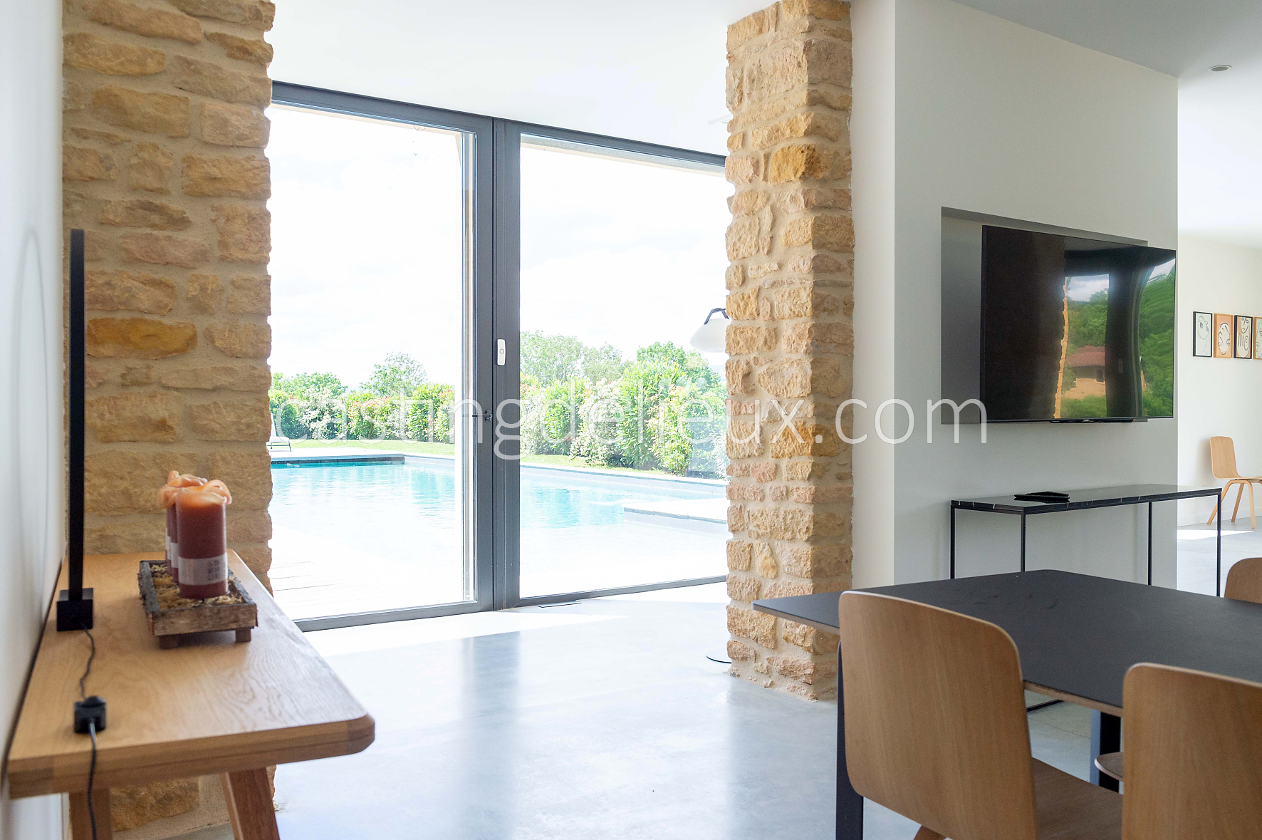 Propriété prestigieuse mêlant pierres dorées du Beaujolais et architecture contemporaine. Avec 500 m² d’espaces intérieurs, un vaste terrain arboré et une piscine spectaculaire, elle offre un cadre unique et confidentiel. À seulement 15 minutes de Villefranche-sur-Saône et 30 minutes de Lyon, elle procure une véritable sensation d’évasion, loin de tout.