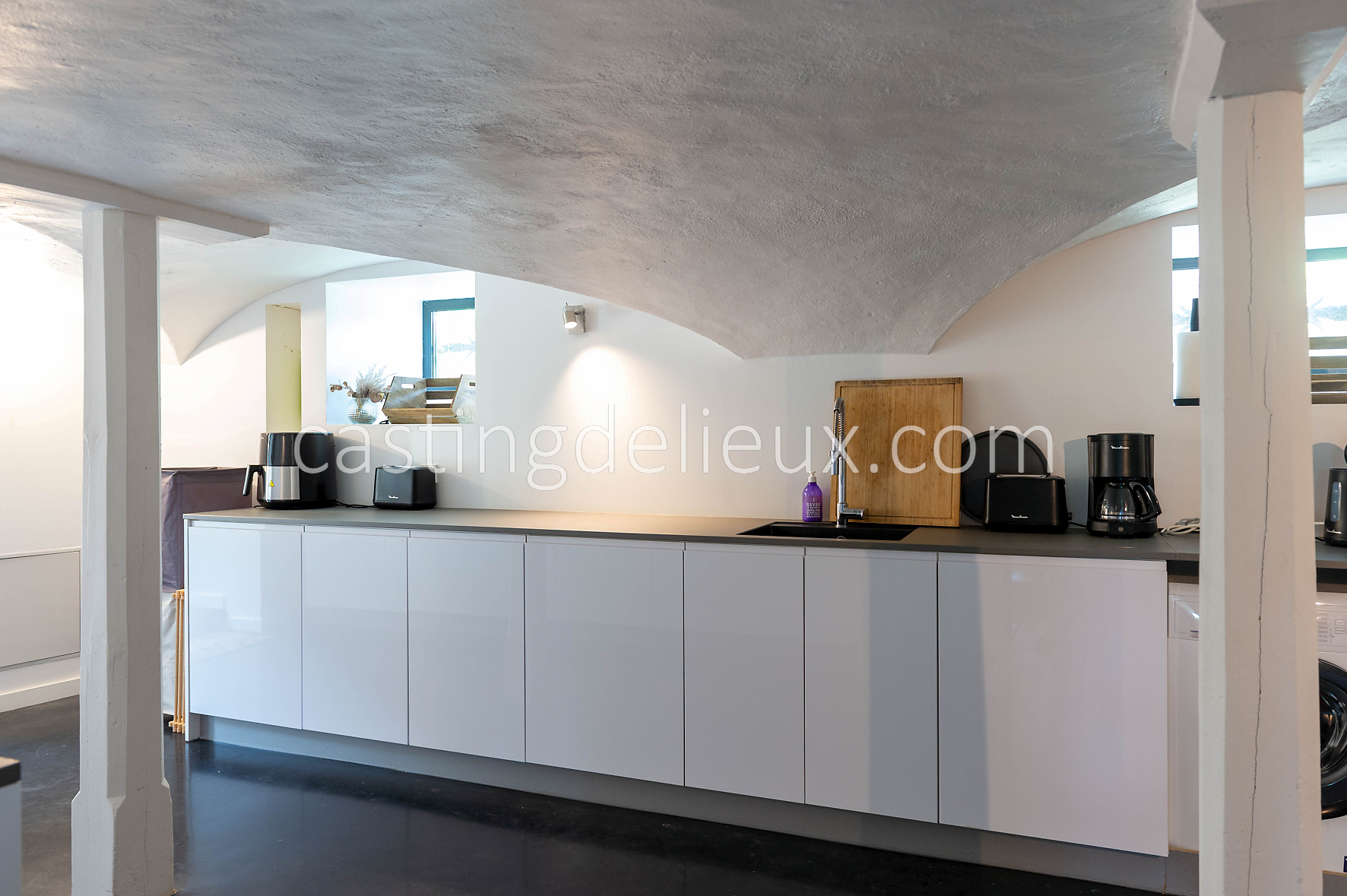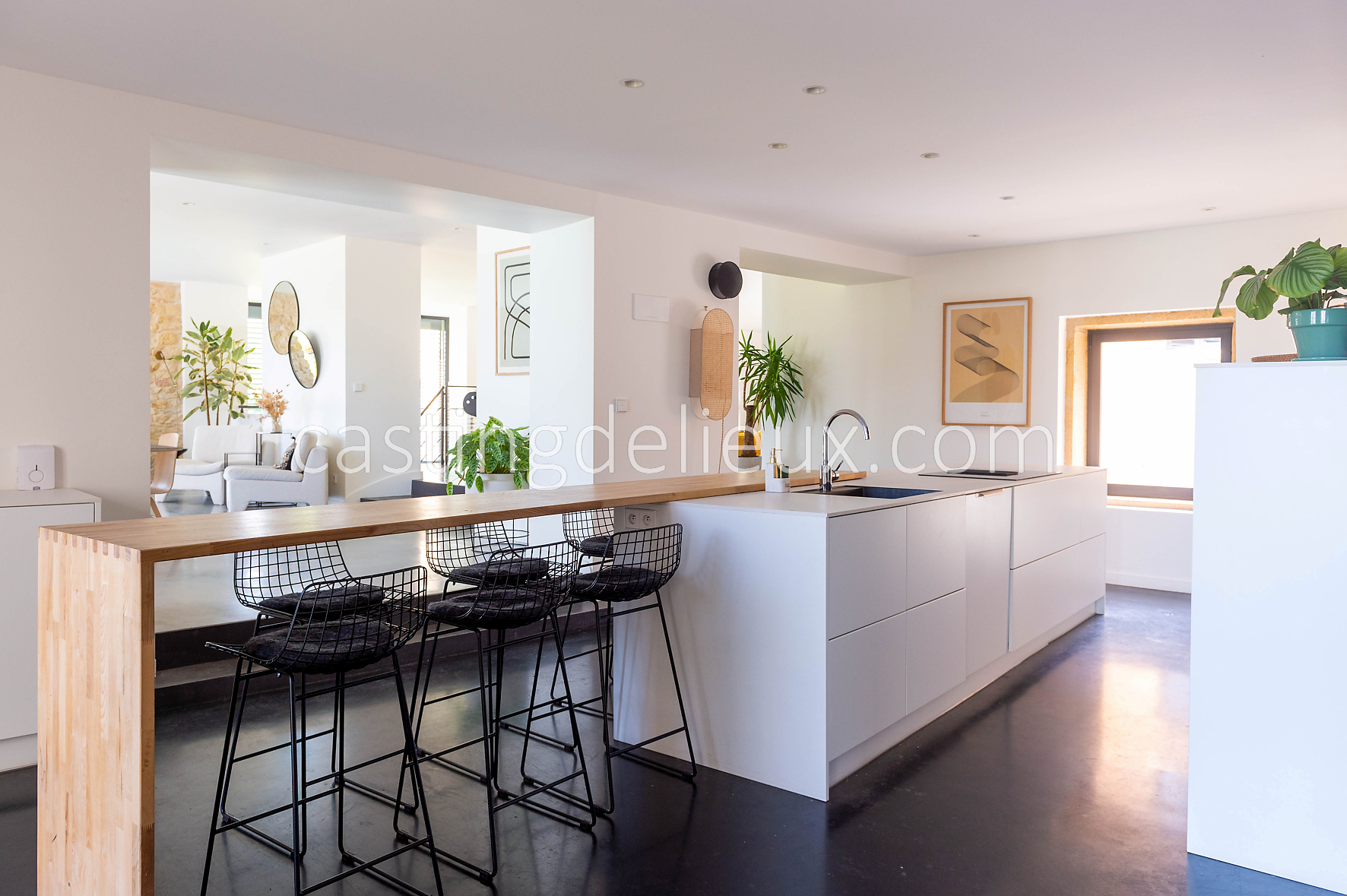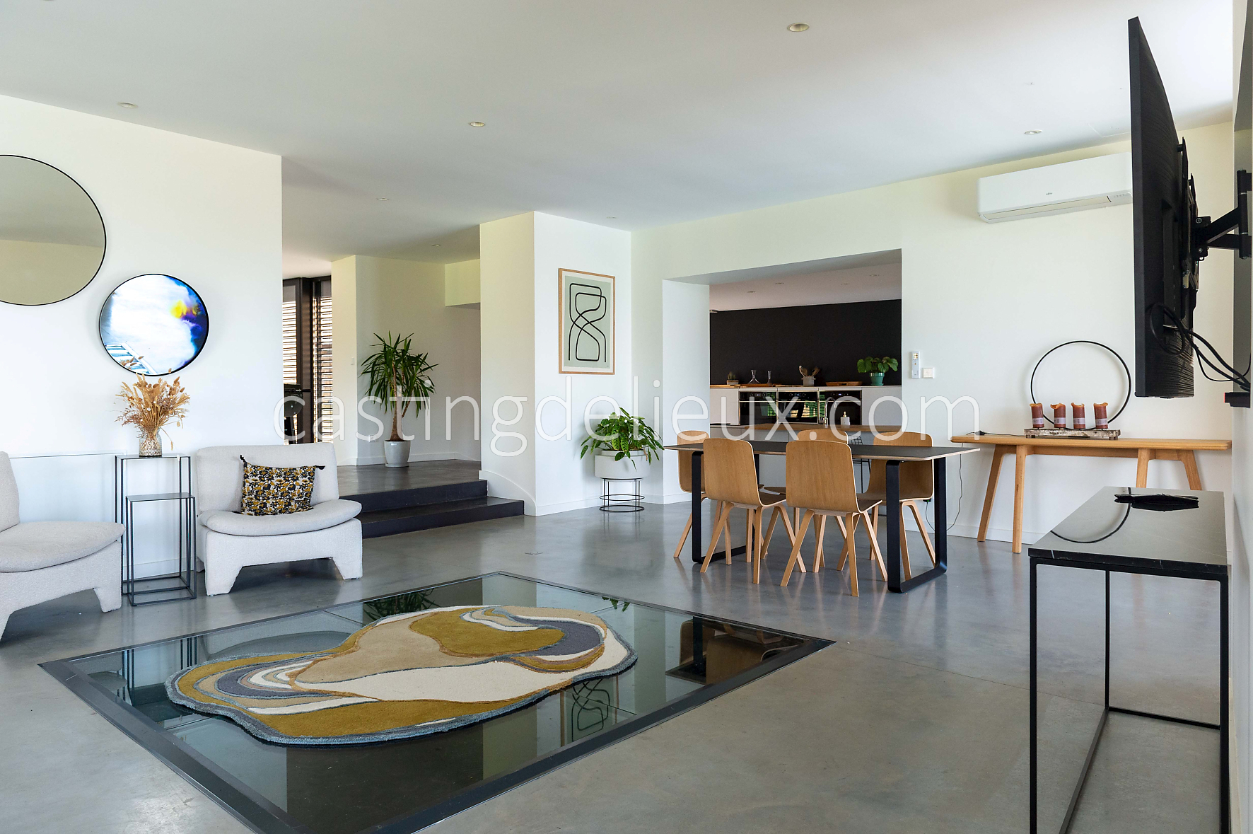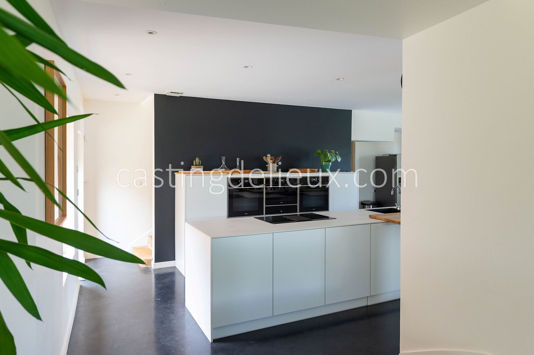 Béton cirée, Verrière / baie vitrée, Cheminée, Déco contemporaine, Cuisine ouverte