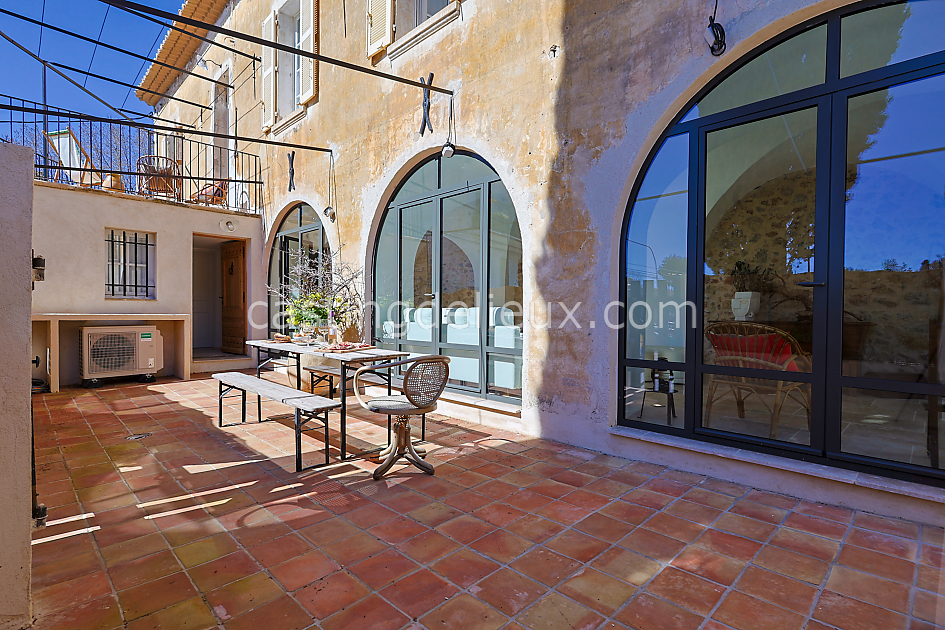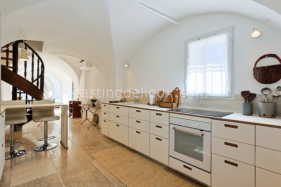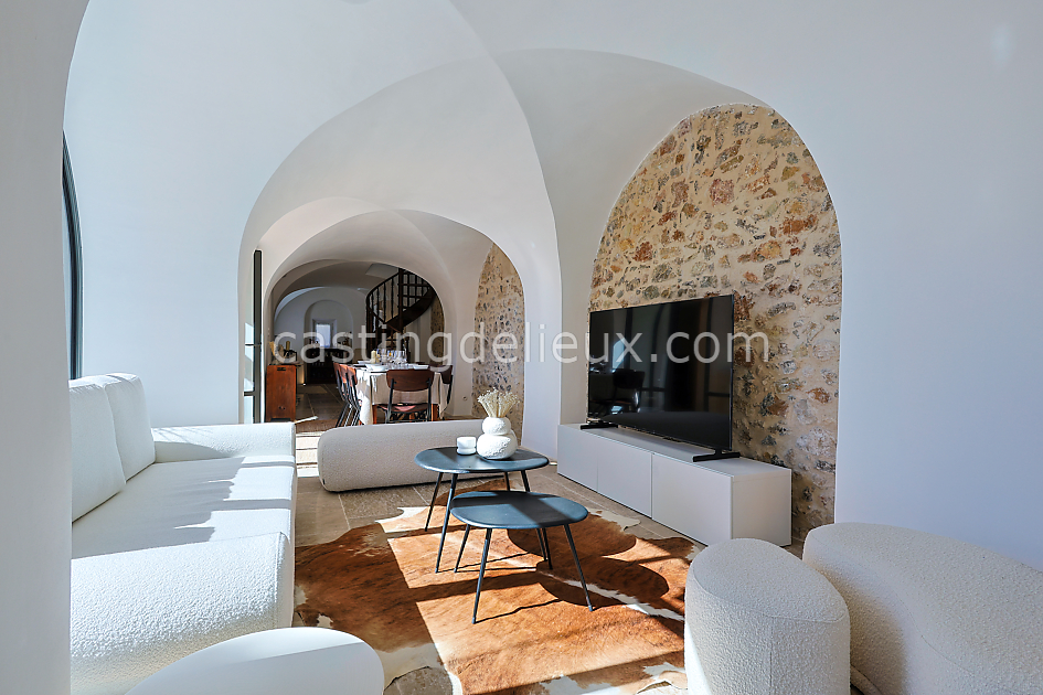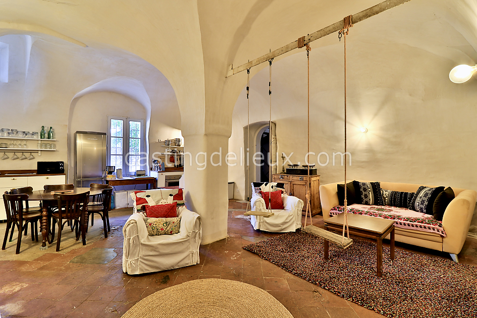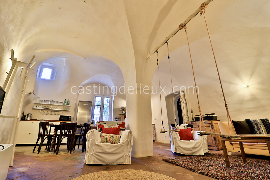 Maison atypique située dans le Var, mêlant architecture contemporaine et éléments anciens. Les espaces intérieurs offrent de beaux volumes, des hauteurs sous plafond, des murs en pierre et des zones voûtées au caractère marqué. Plusieurs salons, cuisines et chambres permettent une grande variété d’ambiances, complétées par des terrasses et patios propices aux prises de vue photo et aux tournages. Villa avec deux salons, deux cuisines ouvertes, 3 terrasses, 7 chambres, 3 salles de bain, 3 escaliers intérieurs (bois, pierre, ferronnerie et 7 espaces voûtés en pierre .