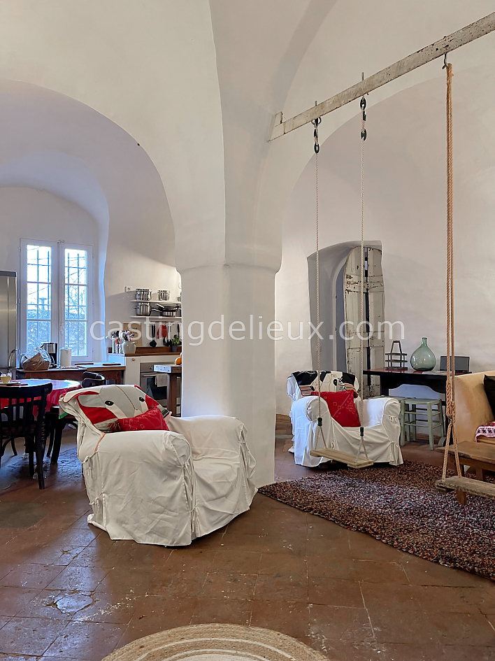 | Ambiance intérieure | Ambiance classique, Grande hauteur sous plafond, Verrière / baie vitrée, Pierre apparente, Sol bois / parquet, Murs blancs / Enduits naturels, Tomettes / carrelage ancien, Voutes, Déco contemporaine, Ambiance rustique, Ambiance design, Cuisine ouverte |