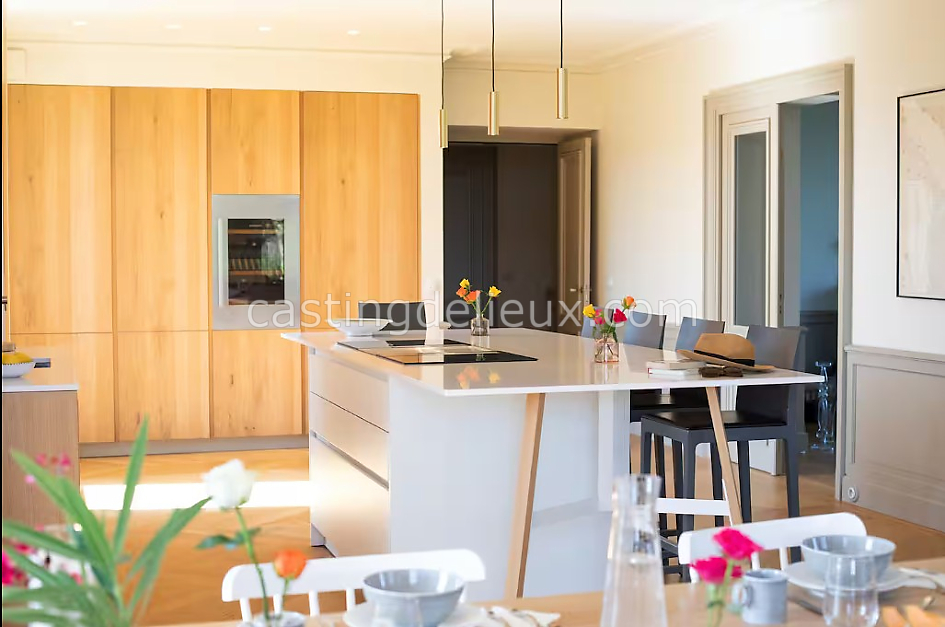 | Ambiance intérieure | Ambiance classique, Buanderie, Sol bois / parquet, Murs blancs / Enduits naturels, Moulures, Cheminée, Cuisine ouverte |