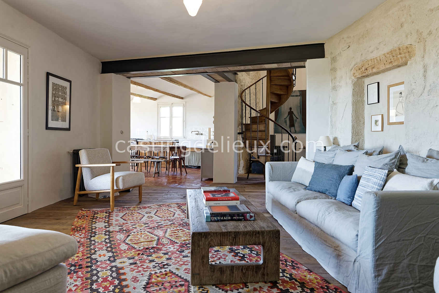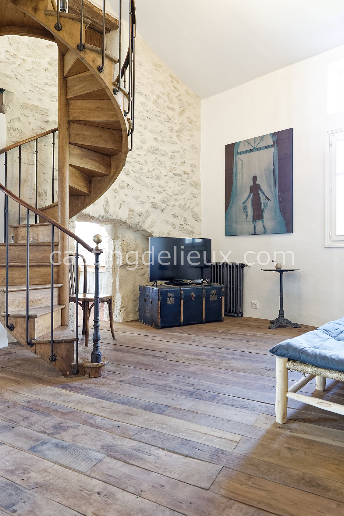| Ambiance intérieure | Pierre apparente, Sol bois / parquet, Murs blancs / Enduits naturels, Tomettes / carrelage ancien, Cheminée, Escalier remarquable, Charpente / poutres apparente, Déco contemporaine, Déco vintage |