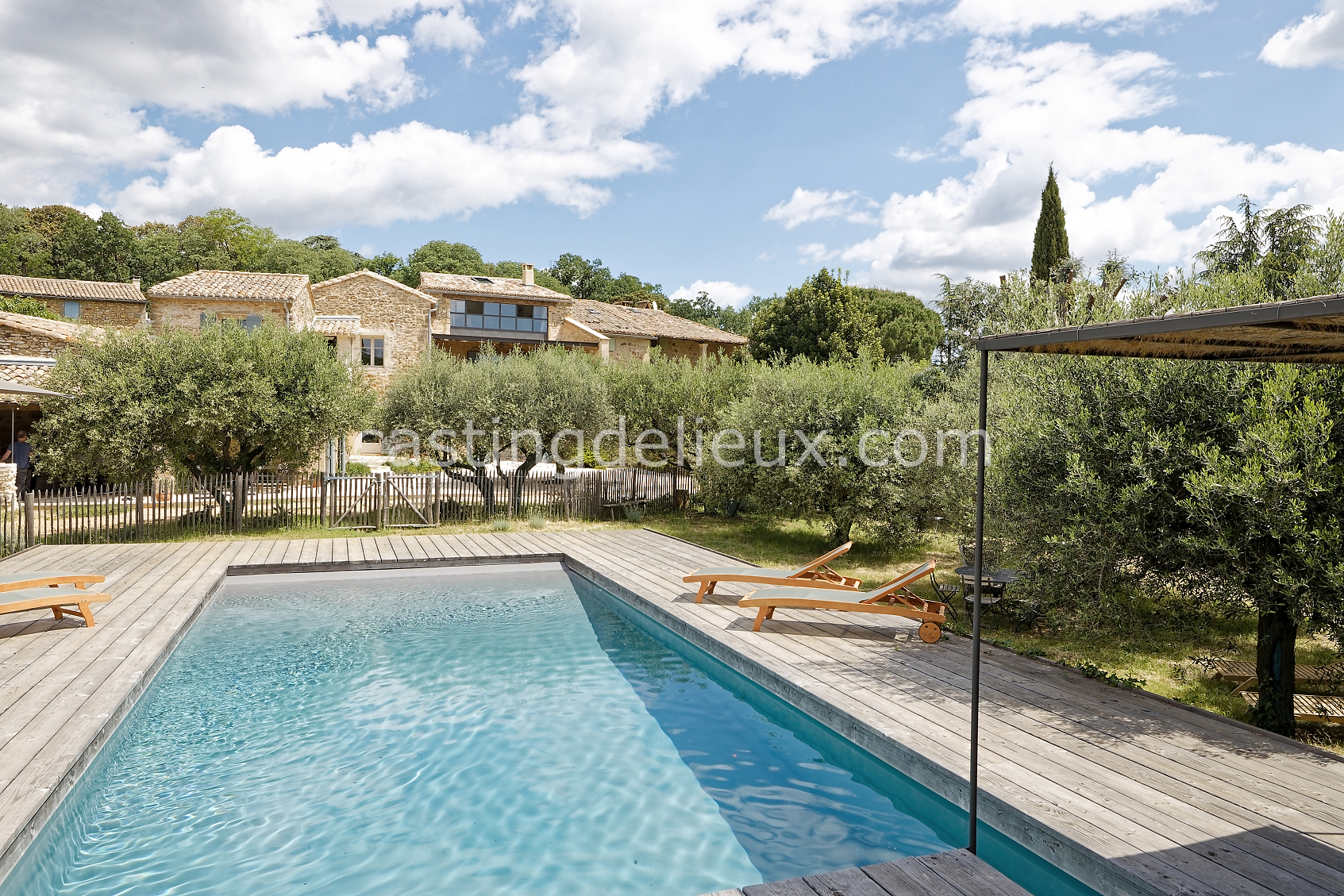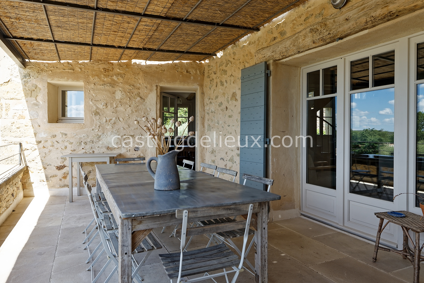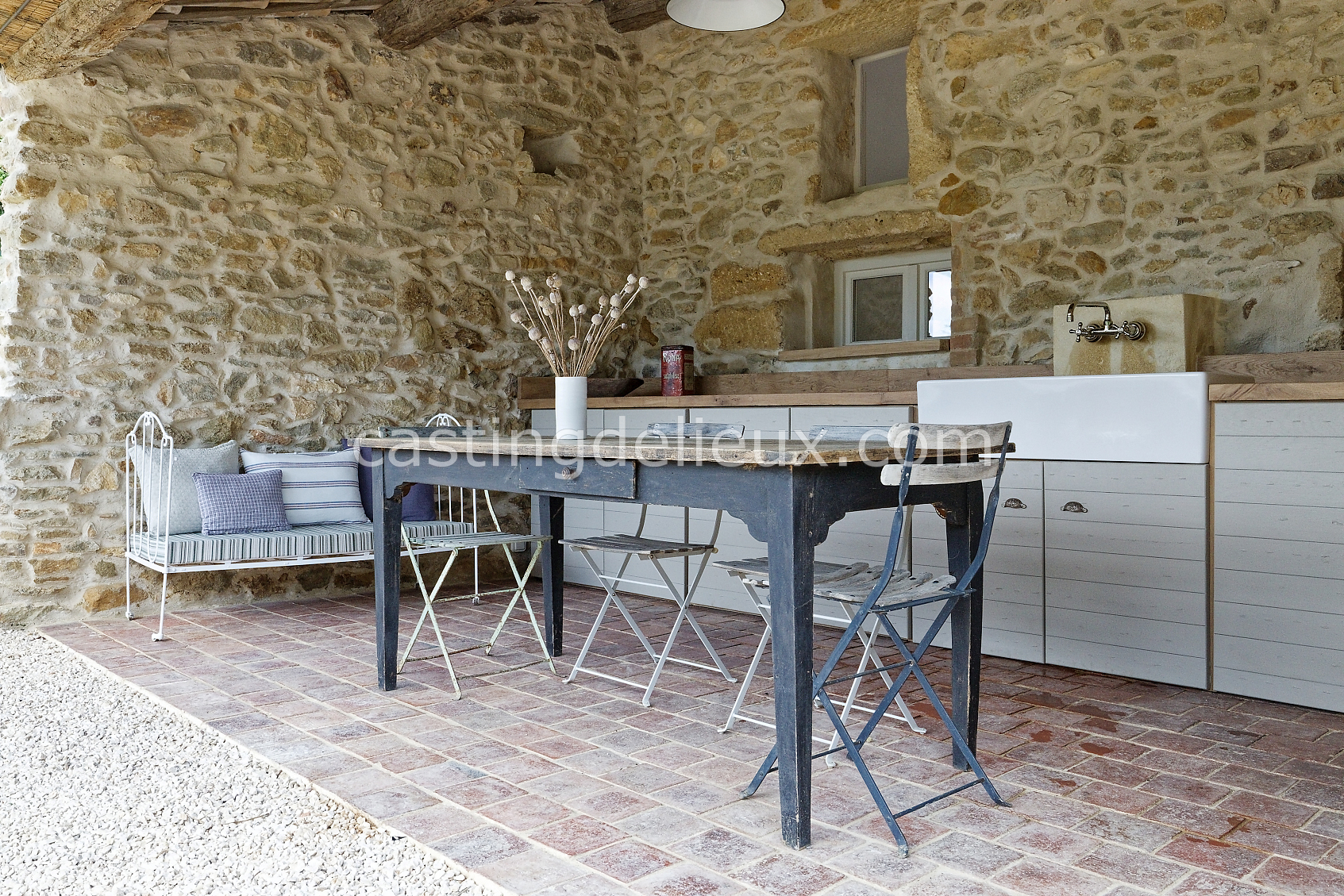| Environnement extérieur | Mur de pierre, Balcon, Pool house / Cuisine d’été, En campagne, En village, Cour intérieure / Patio, Piscine traditionnelle, Terrasse bois |