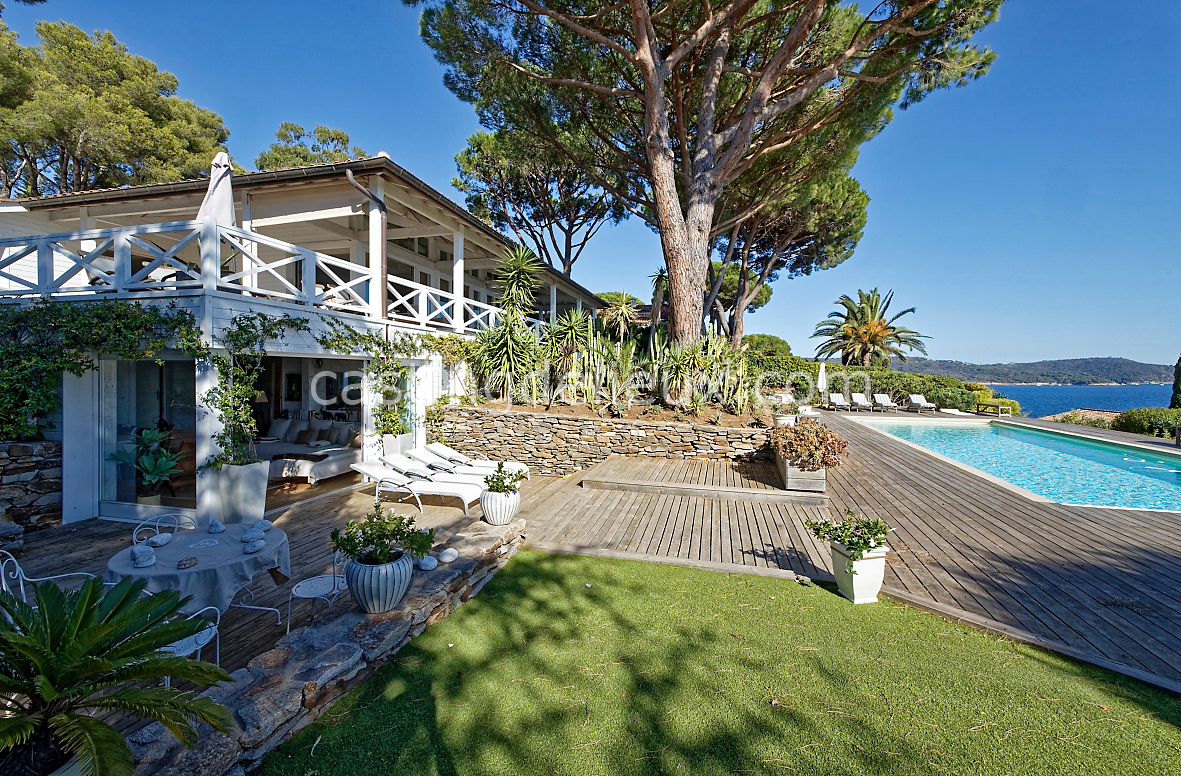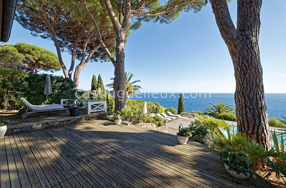 Villa de 250 m² située à La Croix-Valmer (Côte d’Azur), offrant une vue mer à 180° et un mode de vie méditerranéen. L’intérieur spacieux associe grands espaces ouverts, verrières et parquet, créant une ambiance élégante et lumineuse. À l’extérieur, un terrain de 1 000 m², une terrasse en bois et une piscine sur la mer apportent un cadre exceptionnel. Exposée plein sud, cette maison conjugue confort, lumière naturelle et panorama maritime dans un environnement prisé du Sud-Est.