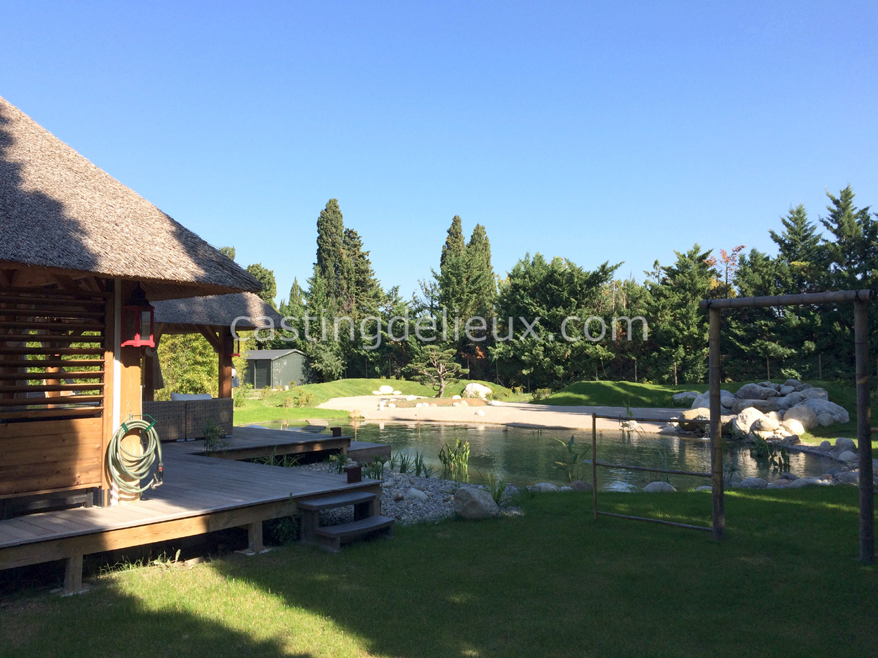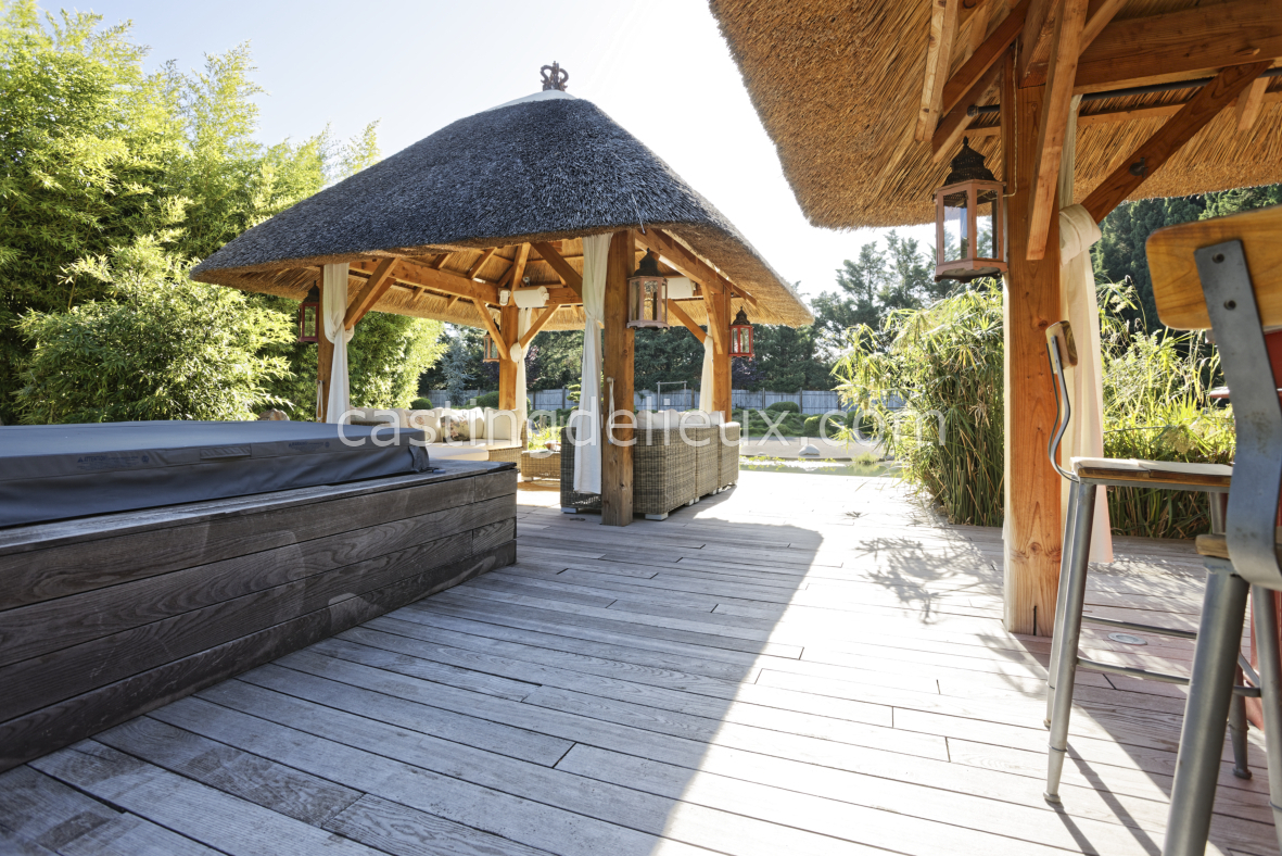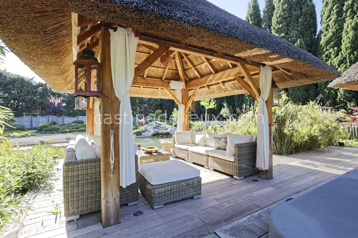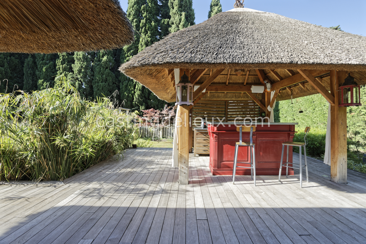 | Environnement extérieur | Fontaine / Bassin décoratif, Pool house / Cuisine d’été, Piscine traditionnelle, Jardin paysager / à l'anglaise, Parc arboré, Terrasse bois, Terrasse carrelée / pierre, Terrasse couverte / pergola |