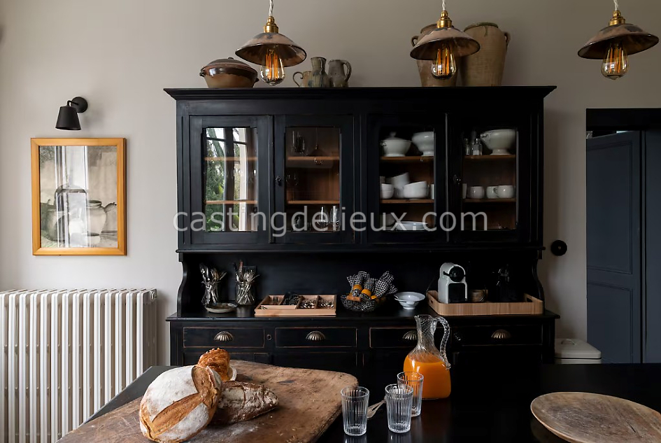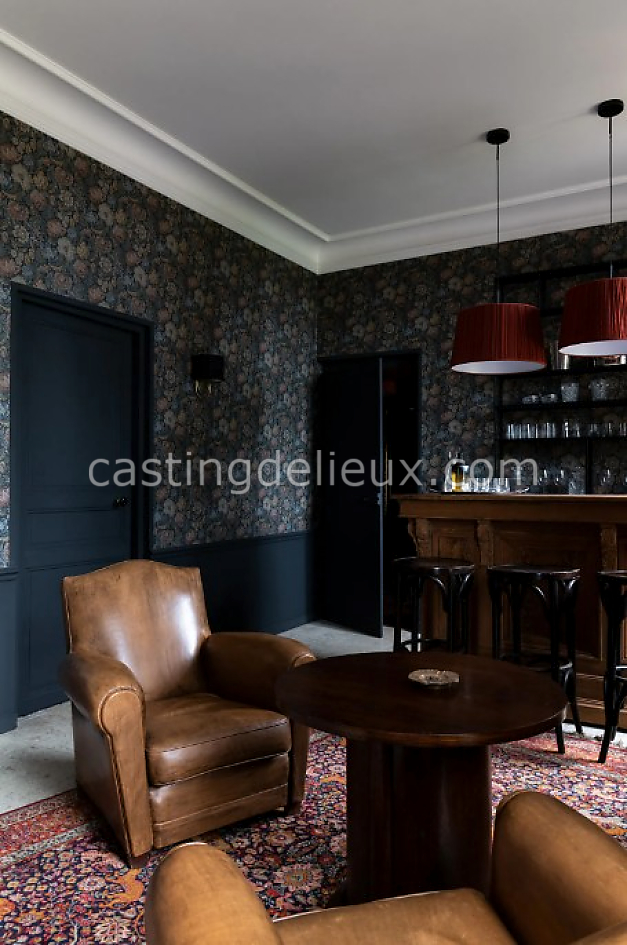 | Ambiance intérieure | Ambiance classique, Bar, Déco tendances actuelles, Grande hauteur sous plafond, Sol bois / parquet, Mur coloré / accent wall, Tomettes / carrelage ancien, Moulures, Cheminée, Charpente / poutres apparente |