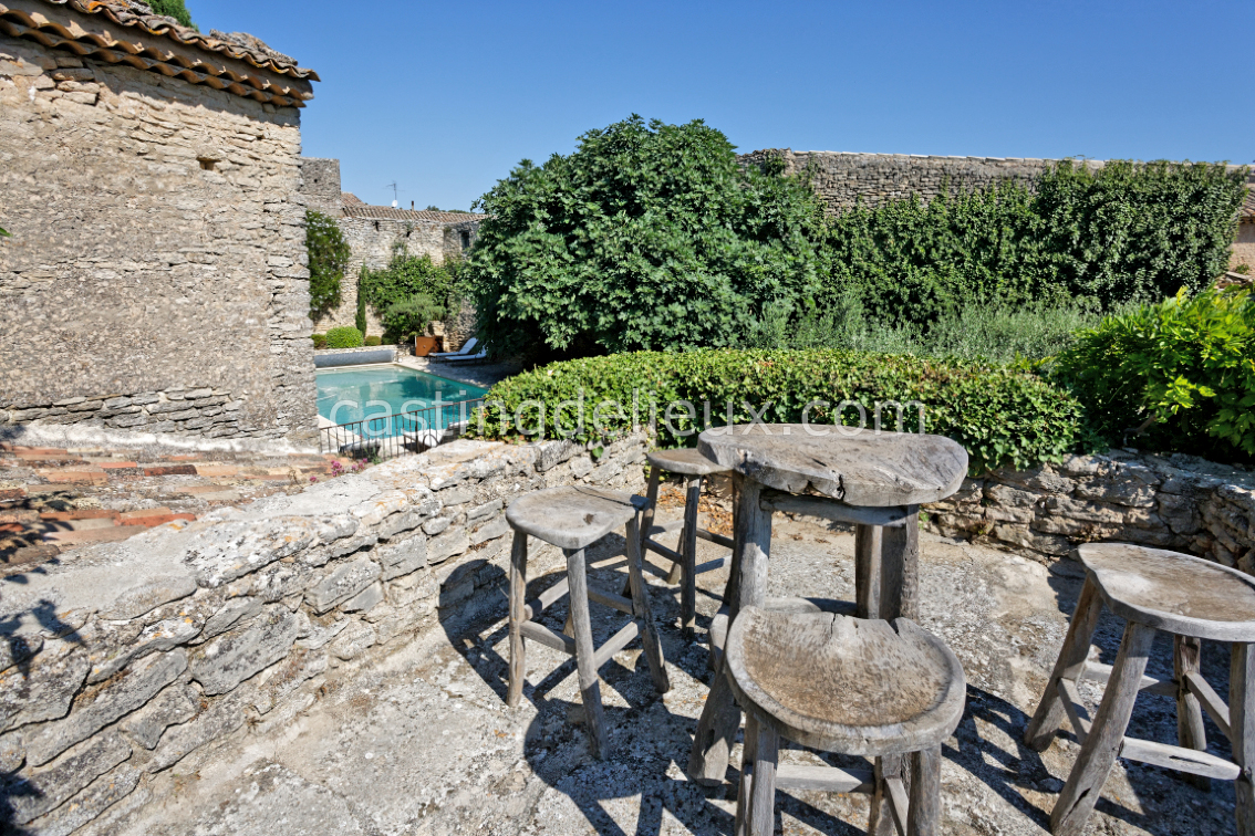| Environnement extérieur | Mur de pierre, En village, Cour intérieure / Patio, Piscine traditionnelle, Terrasse carrelée / pierre |