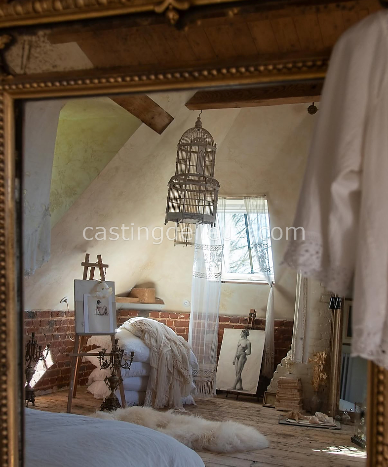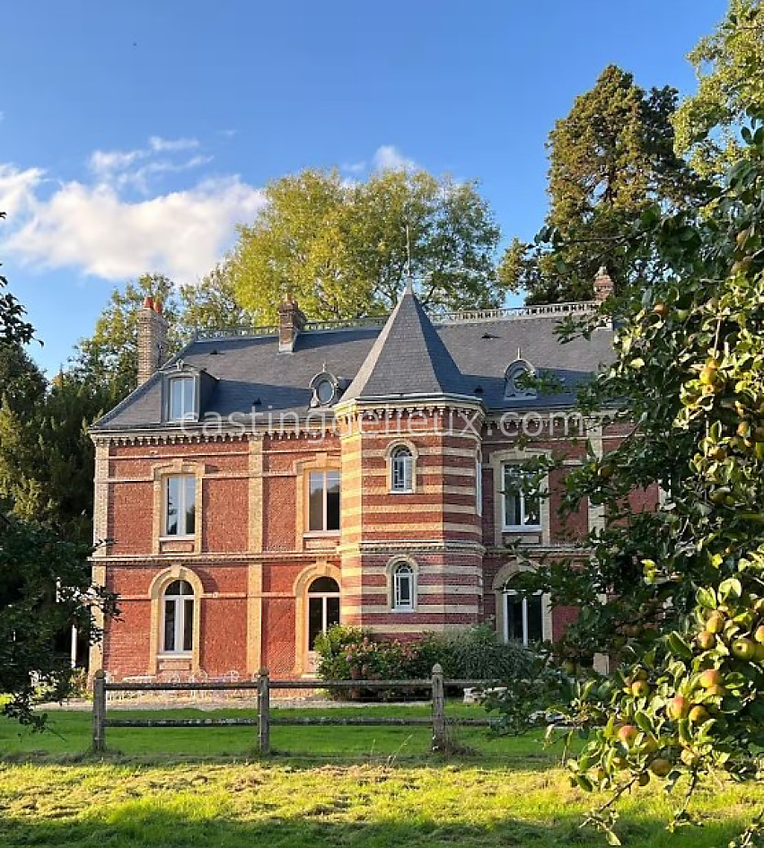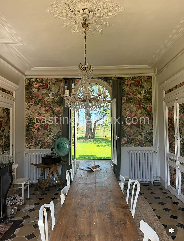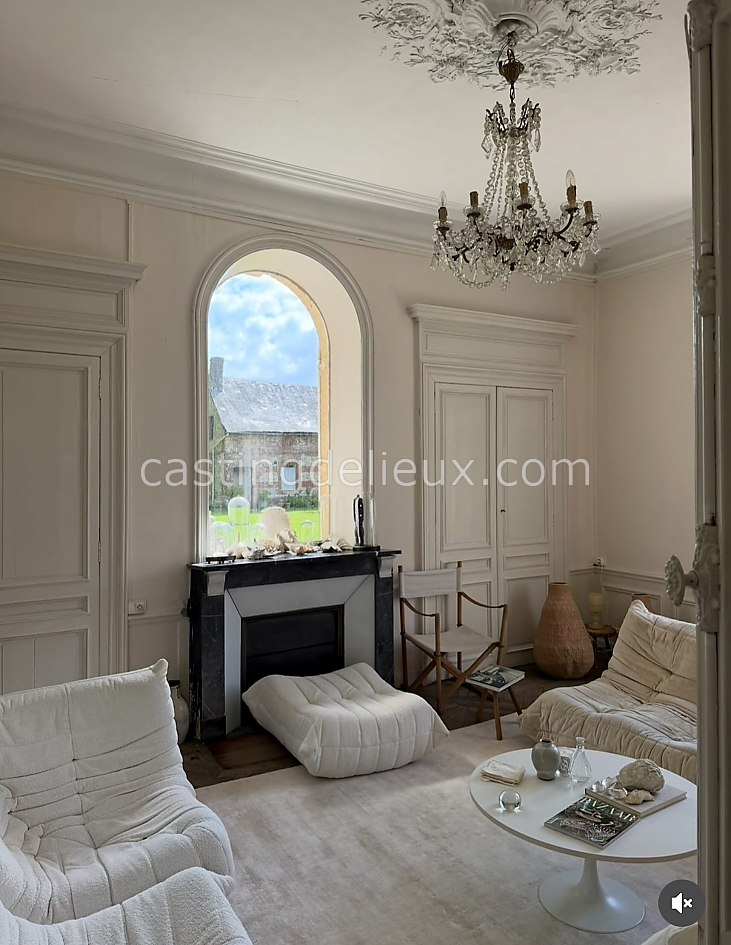Manoir de caractère en Normandie constitué d’une demeure au style brut, implanté en pleine campagne avec prairie, verger et parc arboré. Les espaces intérieurs présentent de hauts plafonds, parquet, moulures et cheminées, offrant une ambiance lumineuse et originale adaptée aux shootings photo, productions visuelles et tournages.
