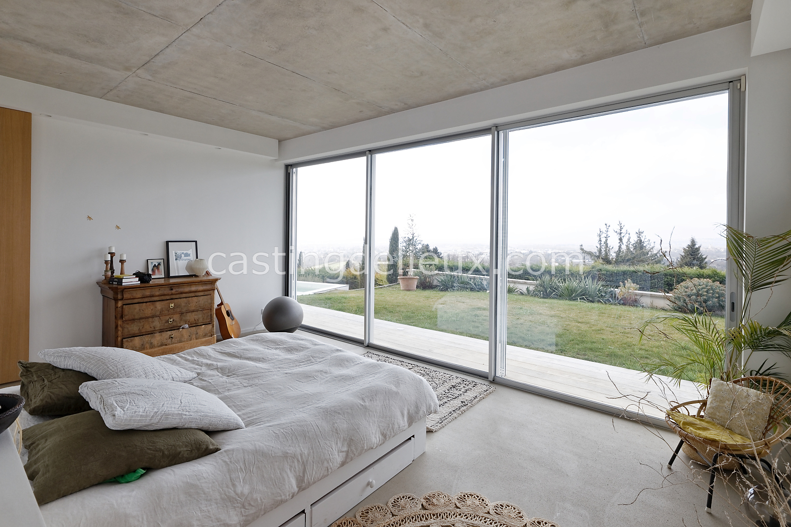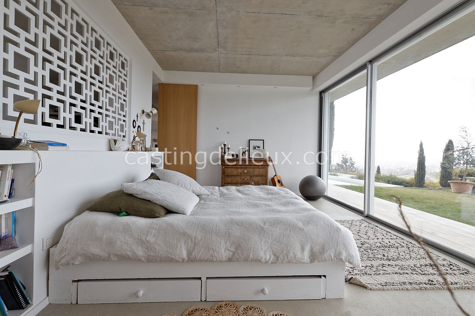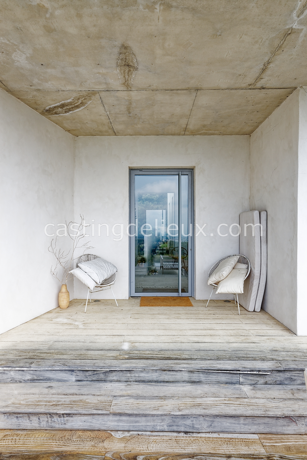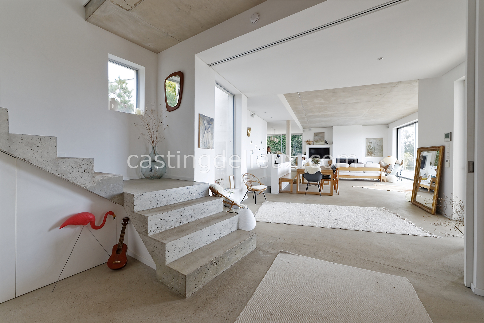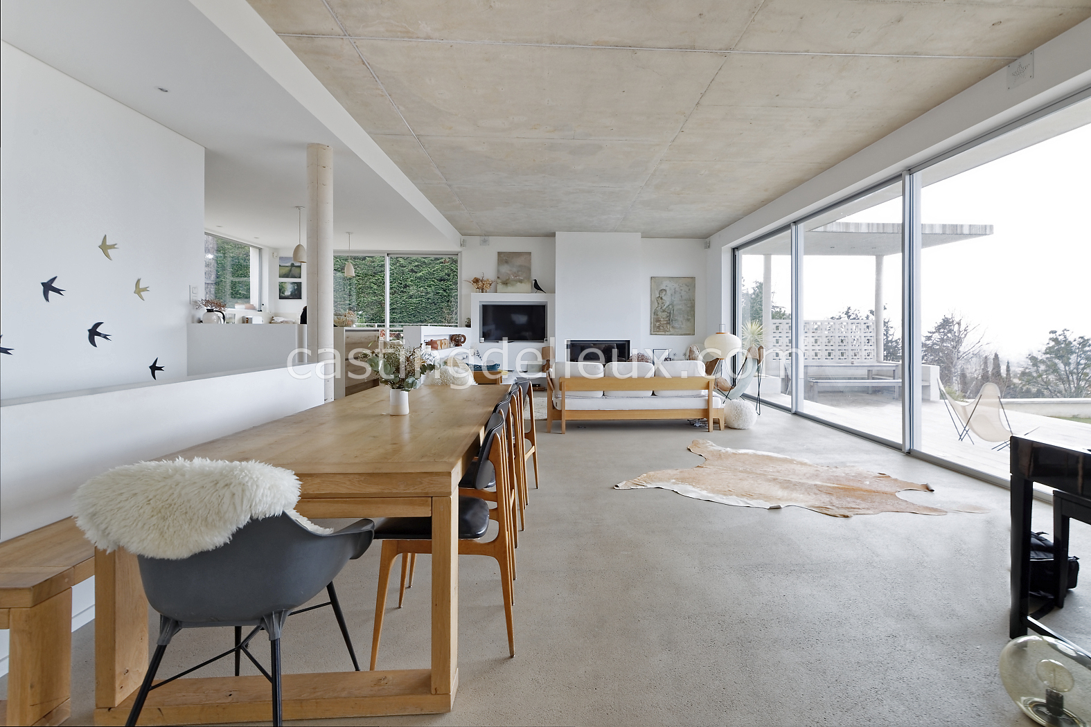 | Ambiance intérieure | Sol béton cirée, Béton brut, Murs blancs / Enduits naturels, Cheminée, Déco bohème, Cuisine ouverte |