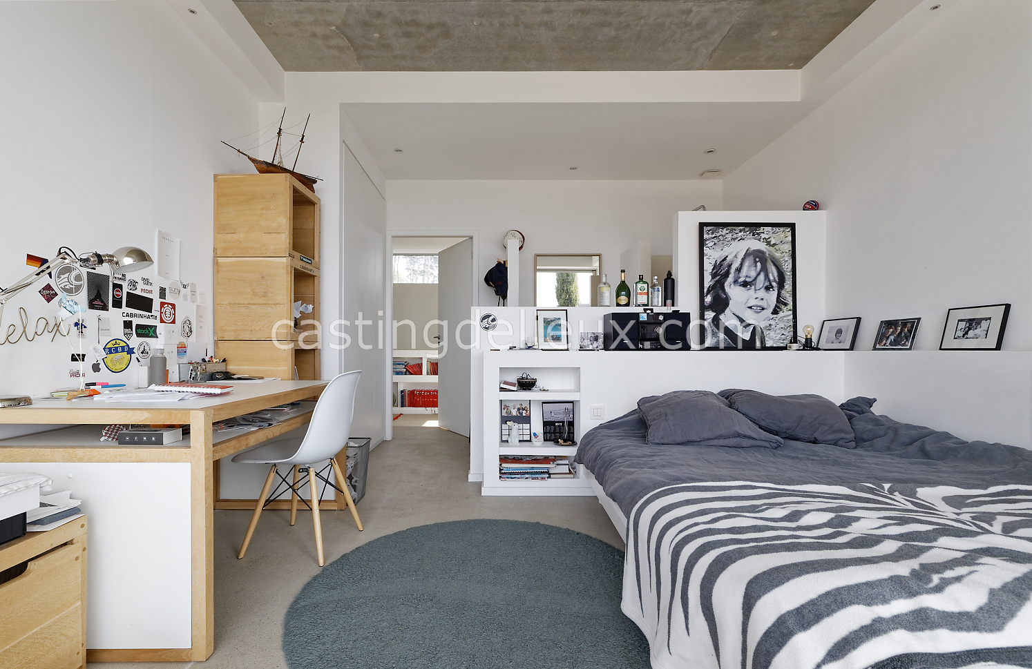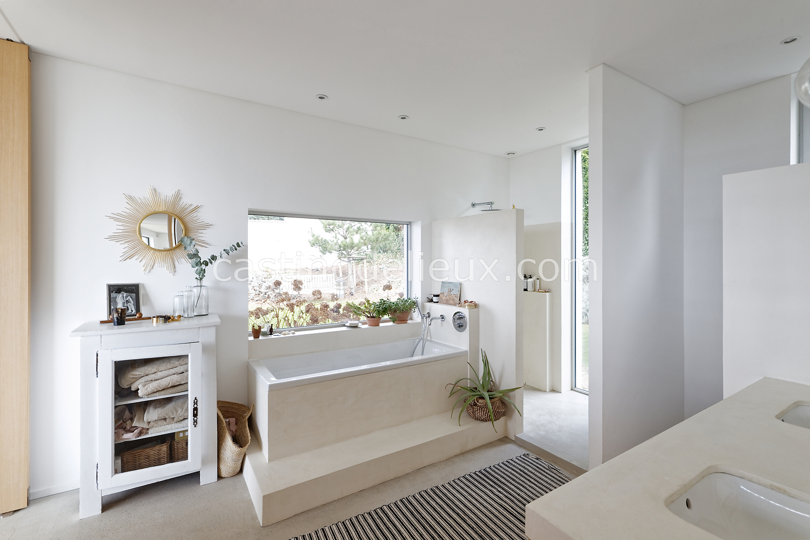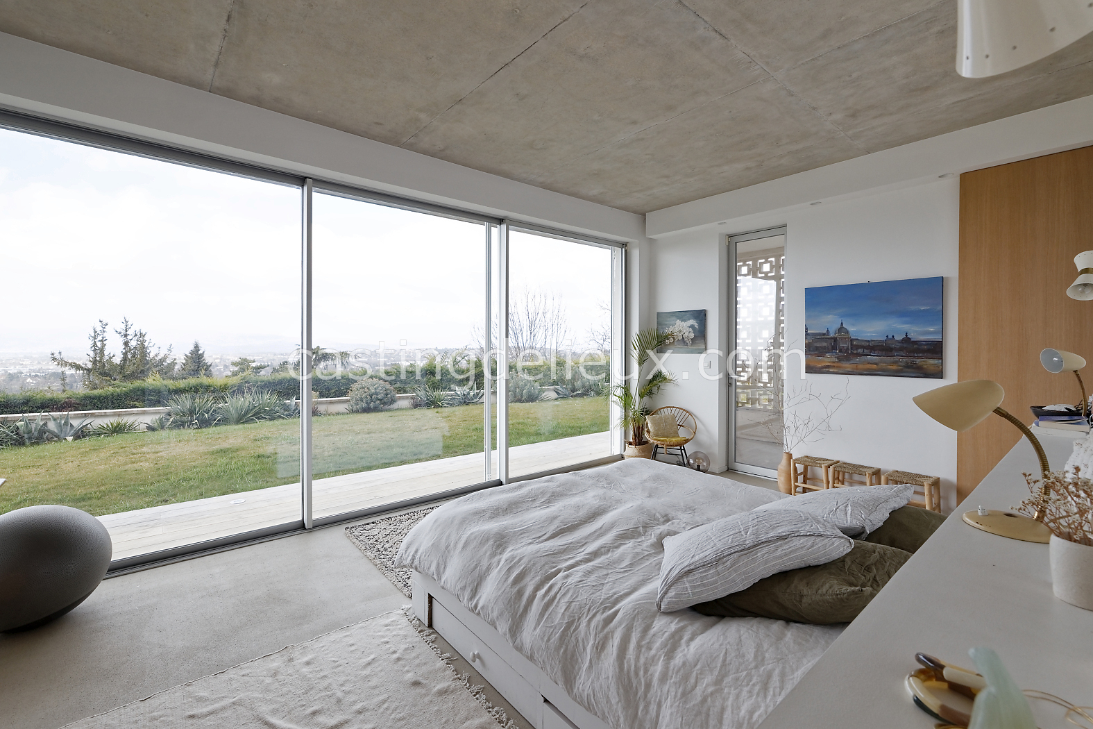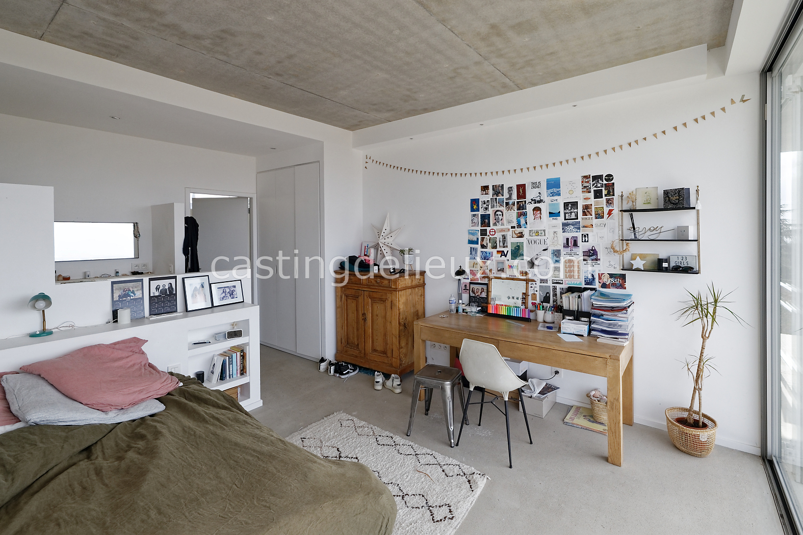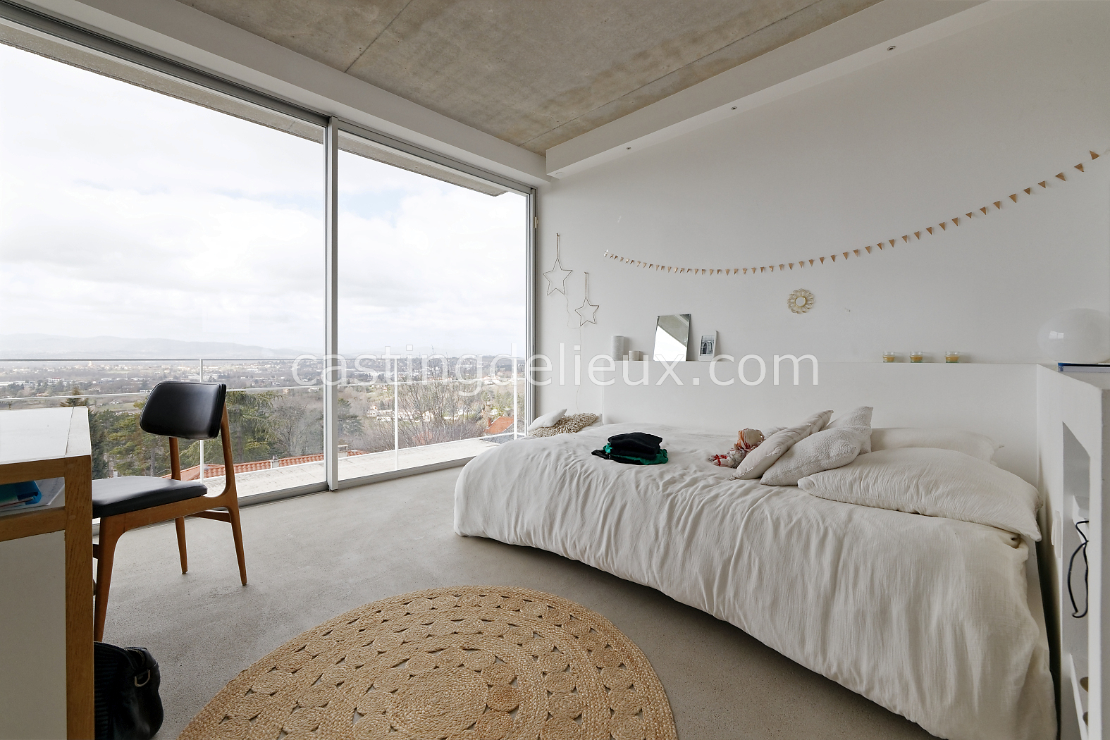 | Ambiance intérieure | Sol béton cirée, Béton brut, Murs blancs / Enduits naturels, Cheminée, Déco bohème, Cuisine ouverte |