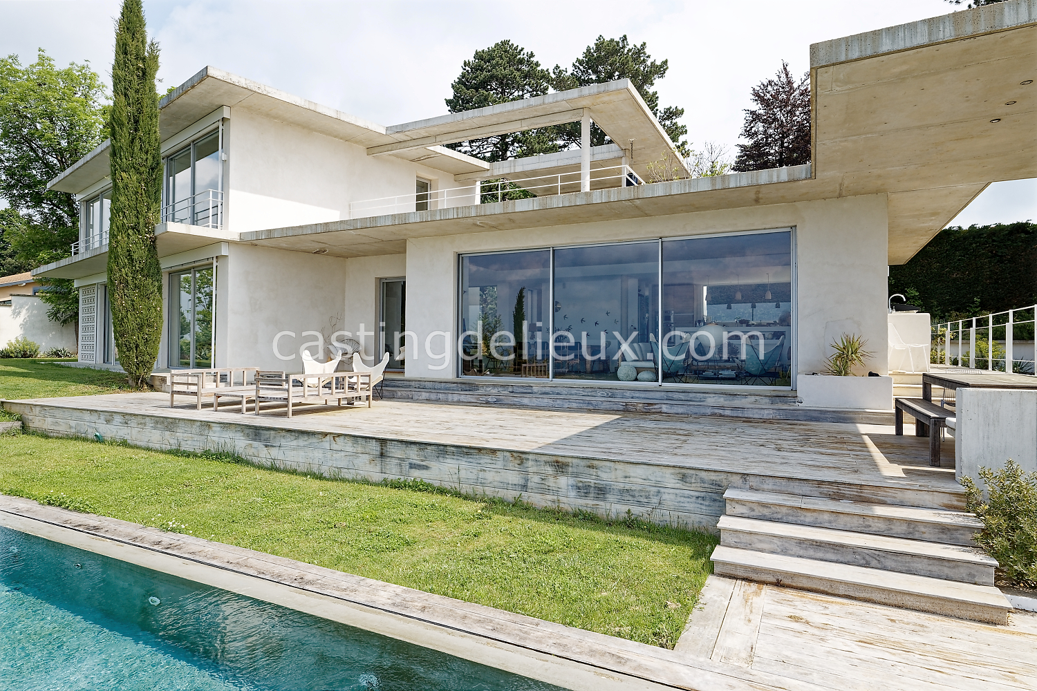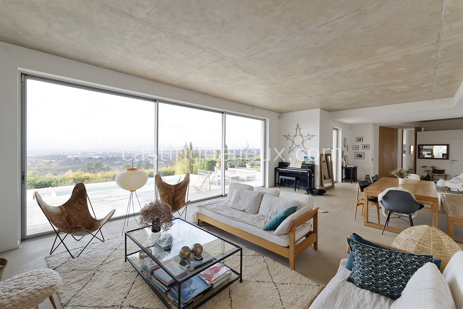 Maison d’architecte contemporaine située dans les Monts d’Or, offrant des volumes spacieux et lumineux, un design soigné et une forte présence visuelle. Les larges ouvertures, les lignes épurées et les matériaux élégants créent des ambiances variées du salon aux espaces extérieurs. La luminosité naturelle, les jeux de volumes et les perspectives architecturales en font un décor polyvalent, idéal pour shootings photo, tournages et projets visuels.