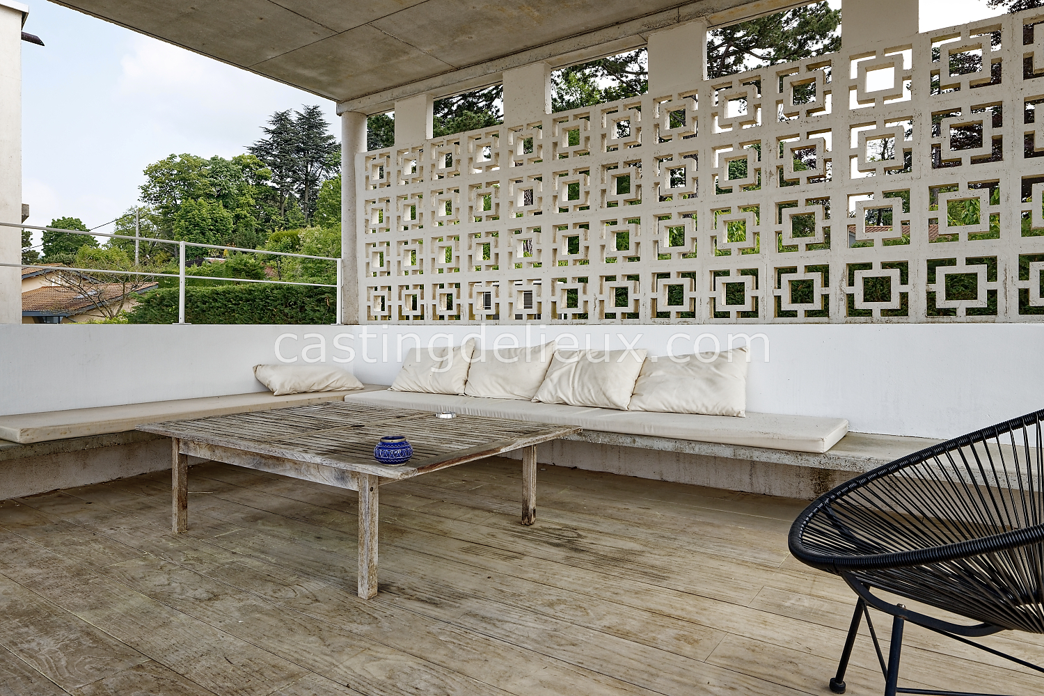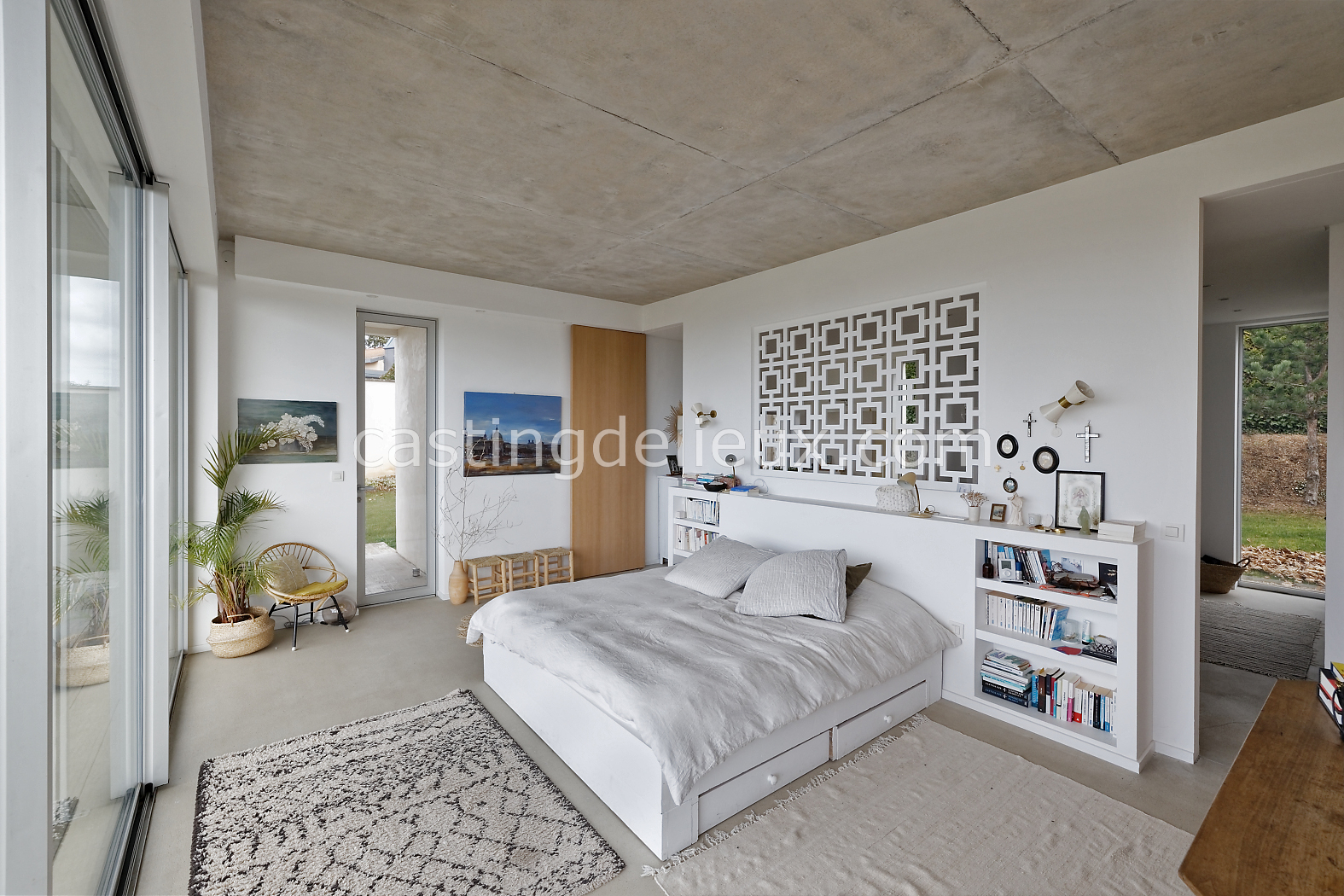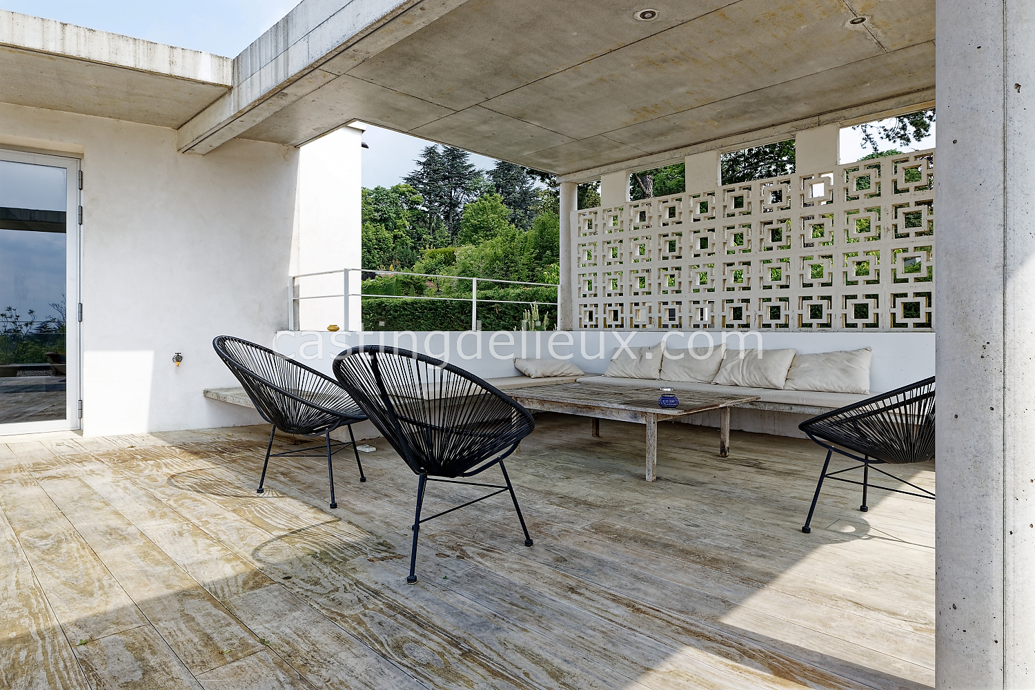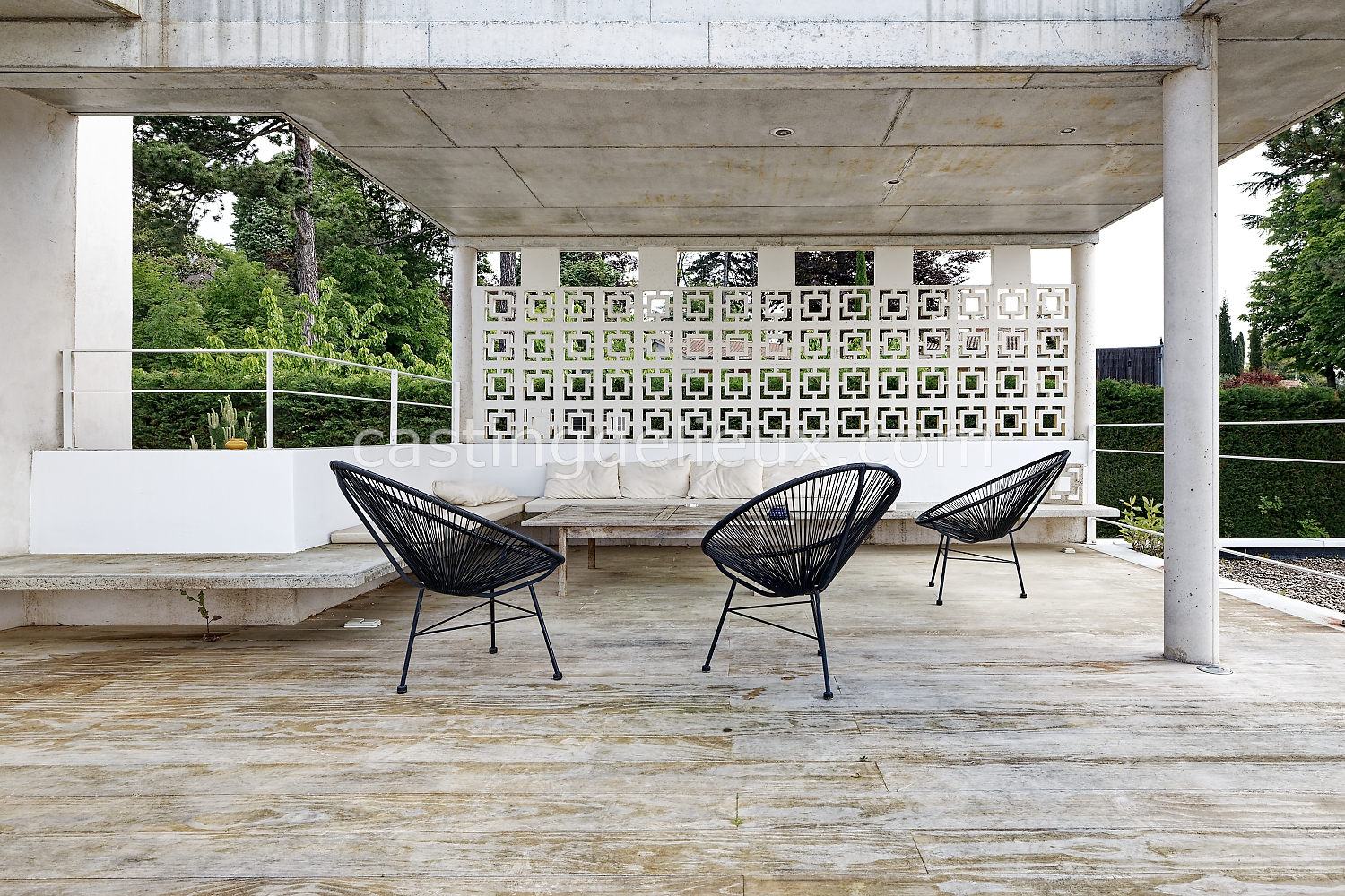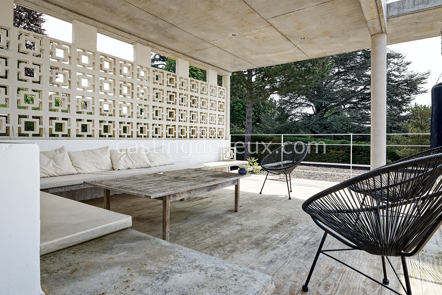 Éléments architecturaux ou décoratifs remarquables : béton au plafond / claustra (modèle double square de Pierre Cardin)