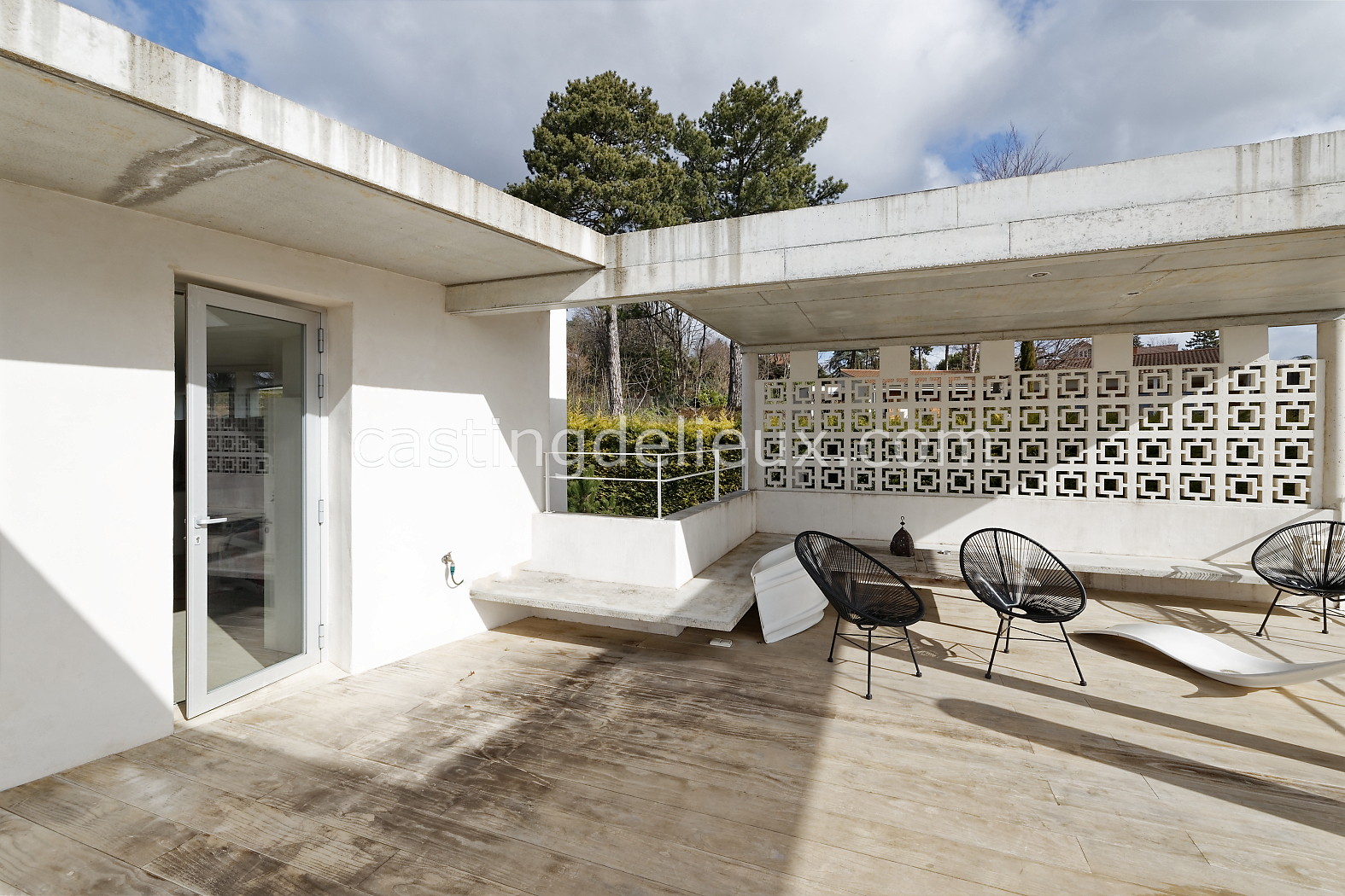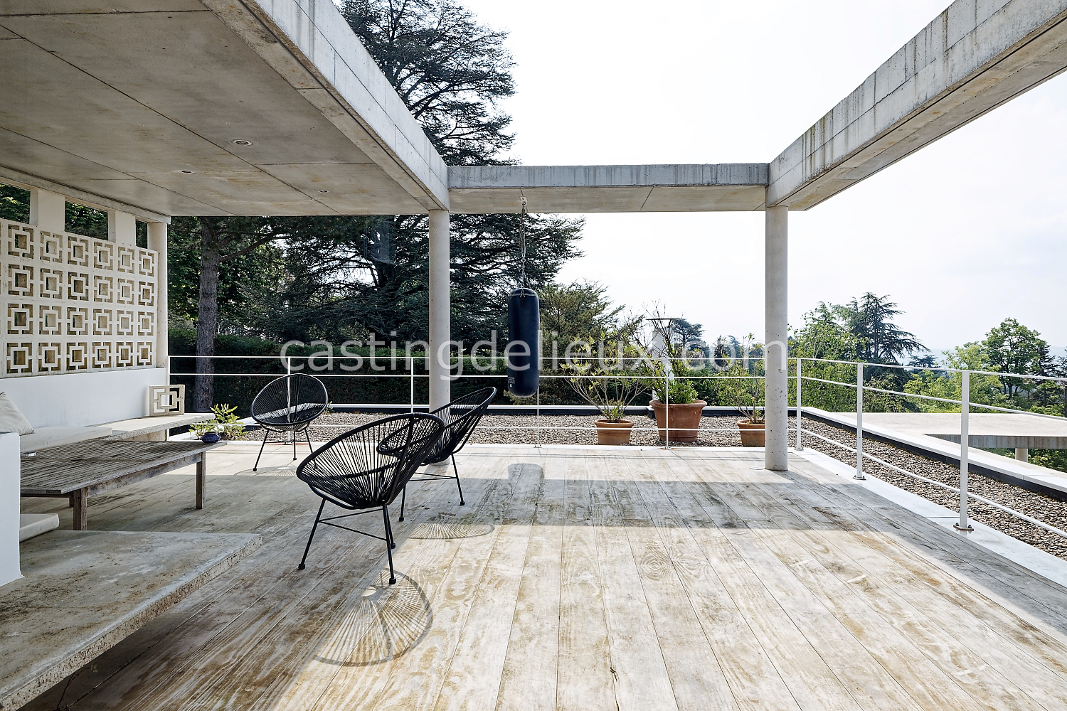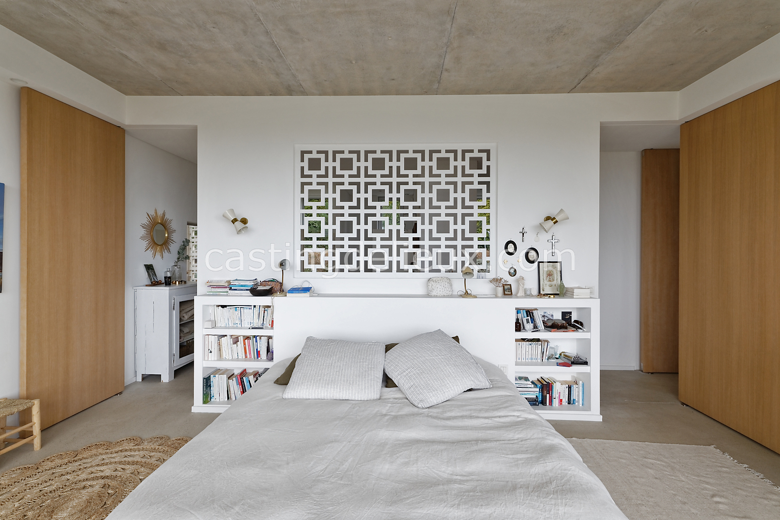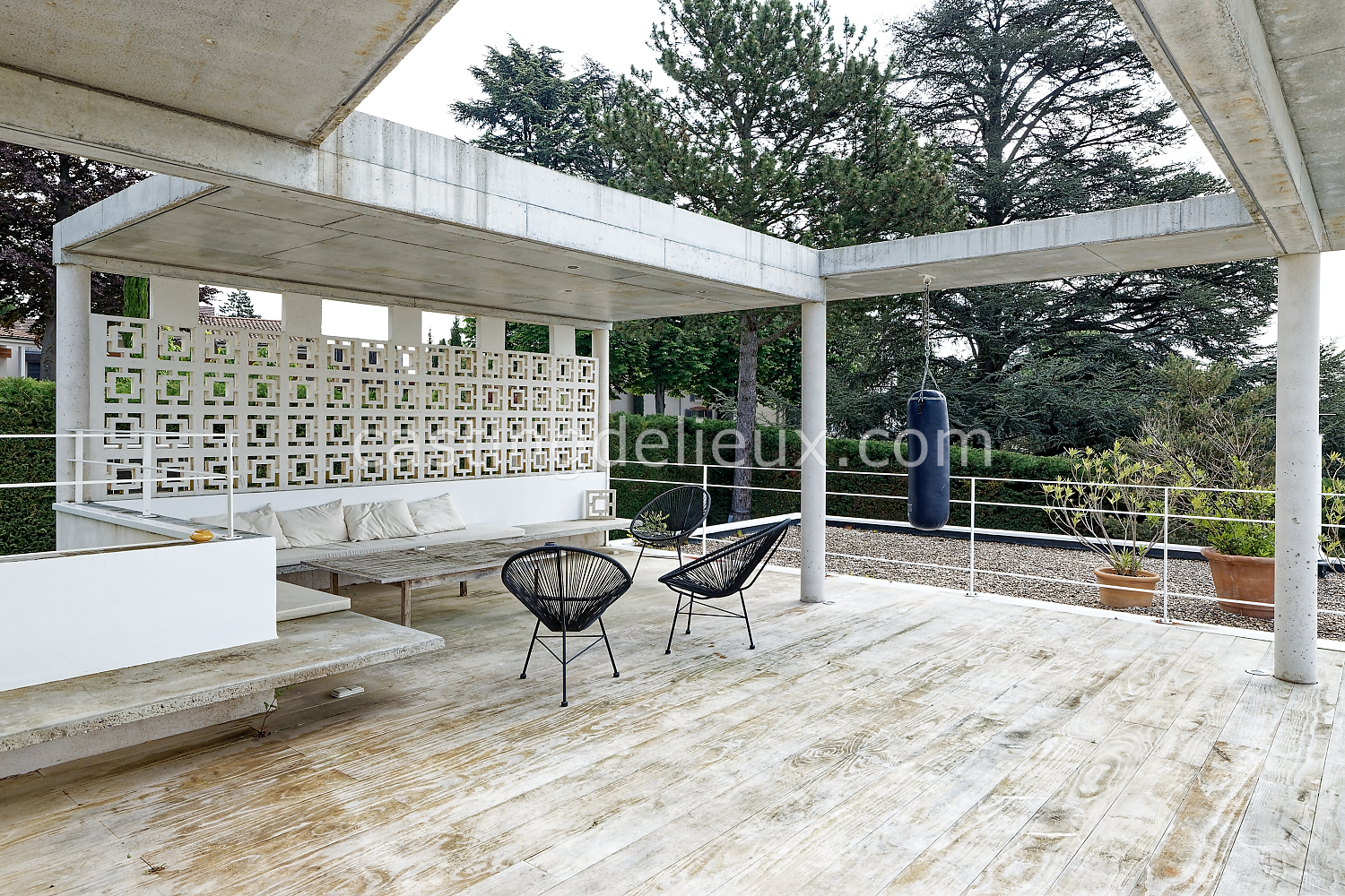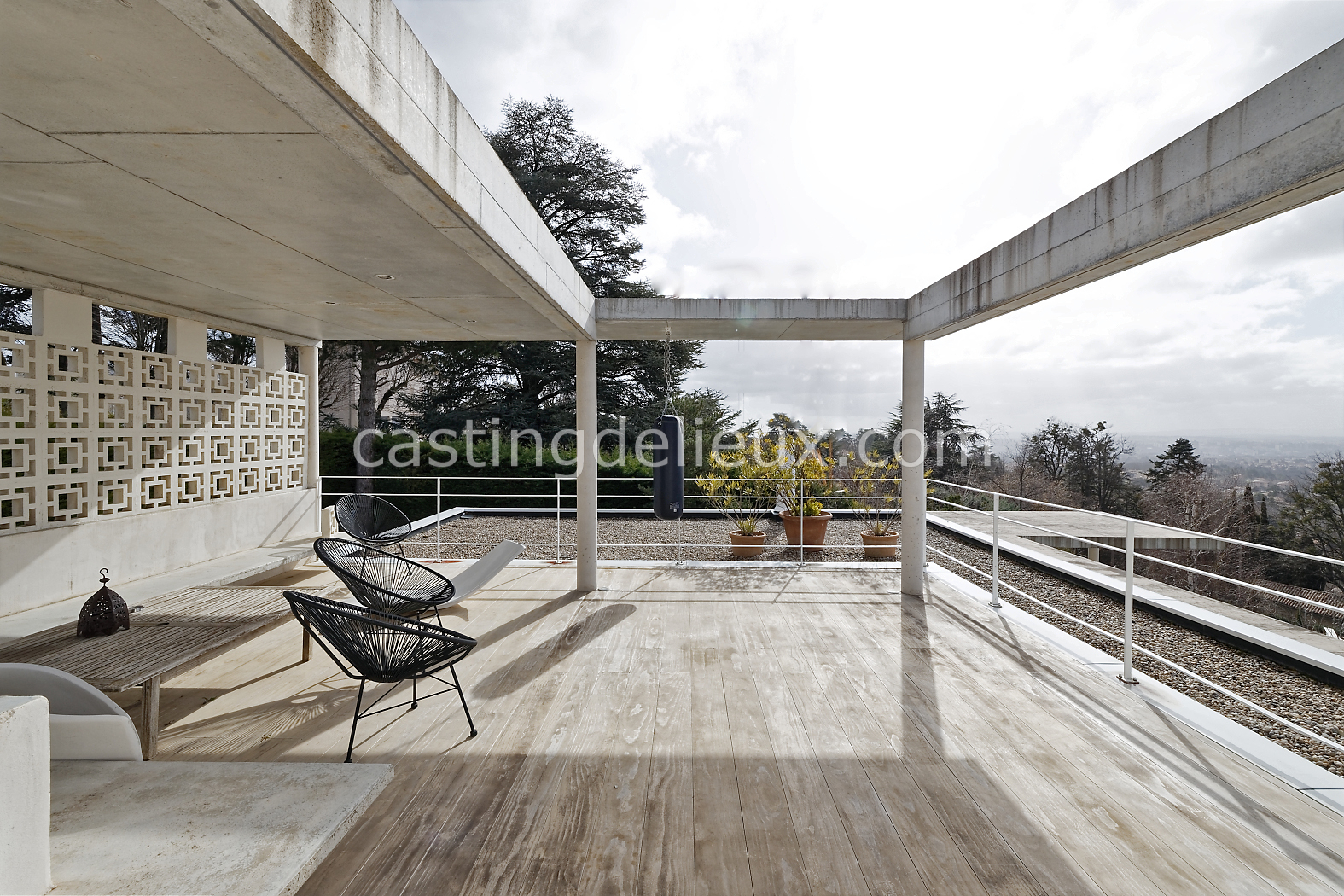 Éléments architecturaux ou décoratifs remarquables : béton au plafond / claustra (modèle double square de Pierre Cardin)