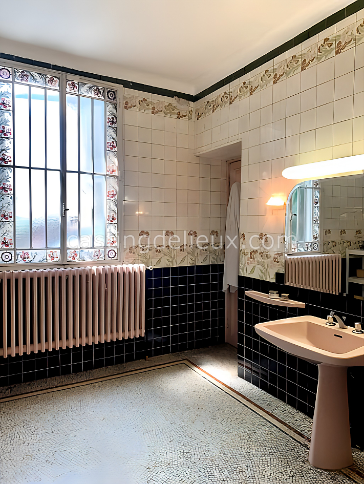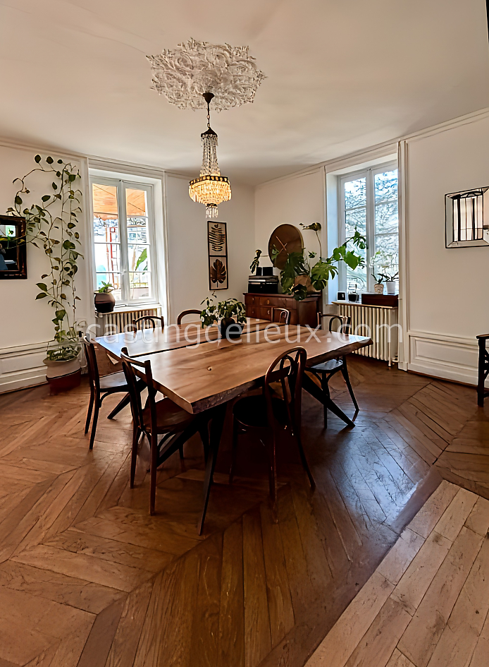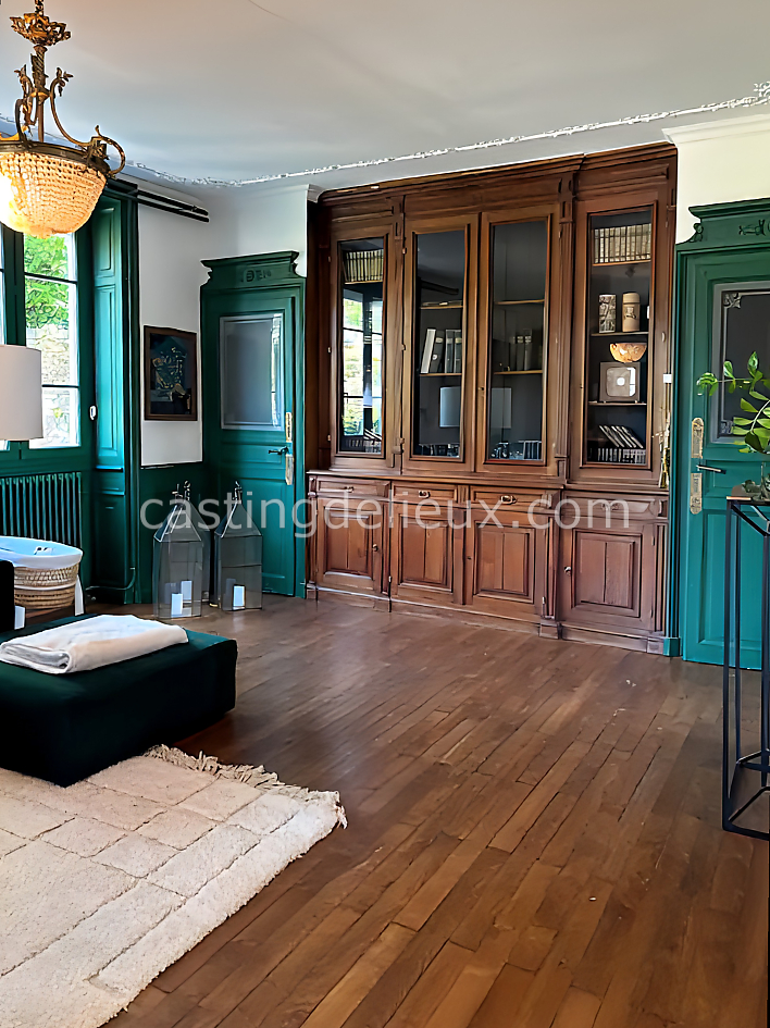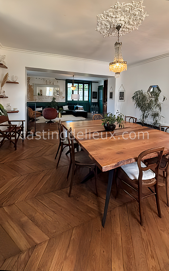 | Ambiance intérieure | Ambiance classique, Déco tendances actuelles, Salle cinéma, Grande hauteur sous plafond, Sol bois / parquet, Mur coloré / accent wall, Tomettes / carrelage ancien, Cheminée, Cuisine ouverte |