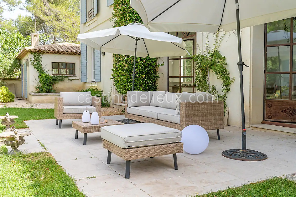 | Environnement extérieur | Fontaine / Bassin décoratif, Balcon, En campagne, Piscine traditionnelle, Parc arboré, Terrasse carrelée / pierre, Terrasse couverte / pergola |