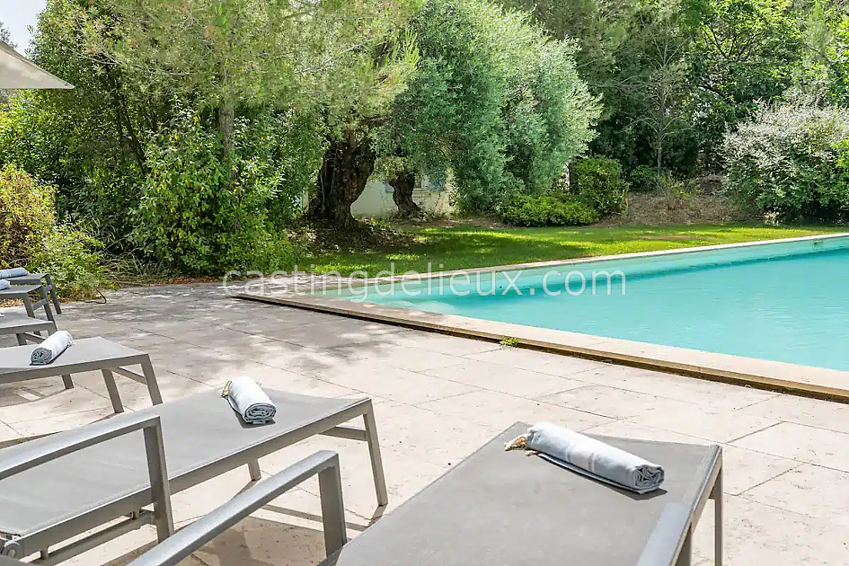 Grande villa de caractère entourée d’un grand jardin arboré, avec piscine, terrasses et espaces lumineux. Intérieur spacieux avec salons, cuisines, billiard room et chambres en suite. Parfait pour shootings photo, tournages, événements.