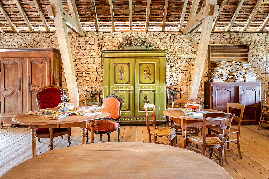 - Autres espaces : grange en pierre de 200 m² sur deux niveaux