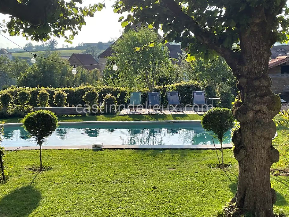 Maison Belle Époque datant de 1870 située près de Mâcon, développant environ 280 m² sur trois niveaux. La propriété comprend une grange en pierre aménagé de 200 m² sur deux niveaux, un jardin paysager avec piscine et plusieurs espaces extérieurs. L’intérieur mêle éléments anciens et rénovation contemporaine avec parquet, poutres apparentes et belle hauteur sous plafond. Le terrain de 2 700 m² offre différents décors naturels et une bonne luminosité. Accès véhicules utilitaires et stationnement sur la propriété.