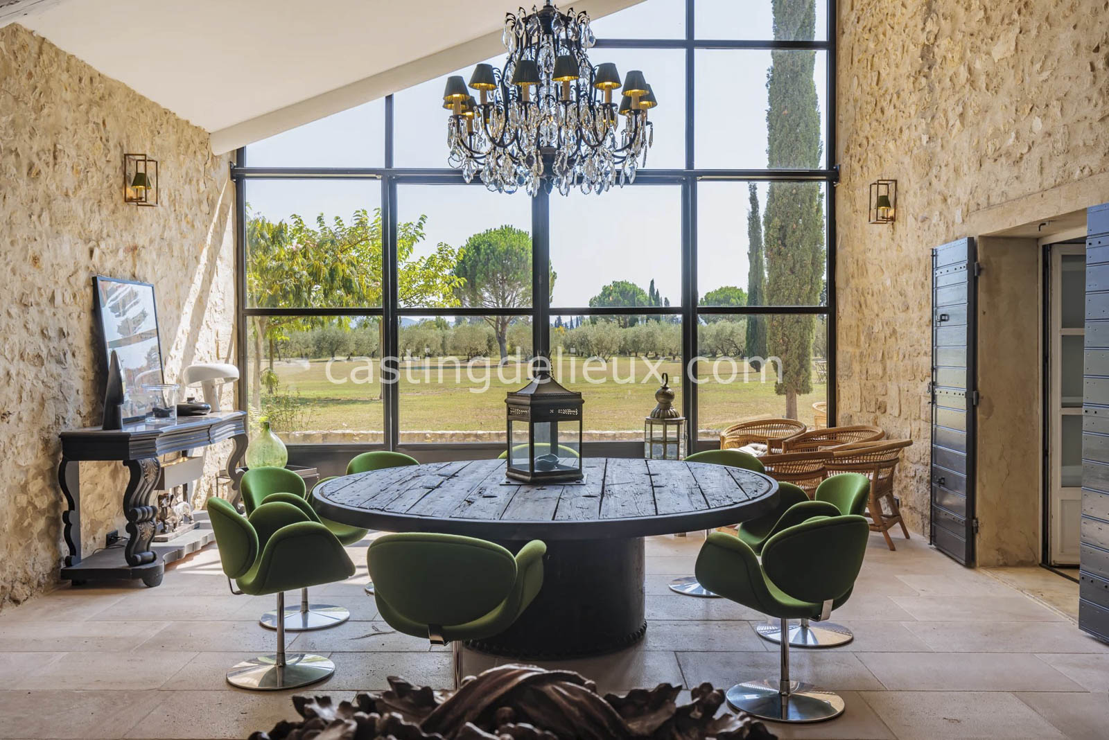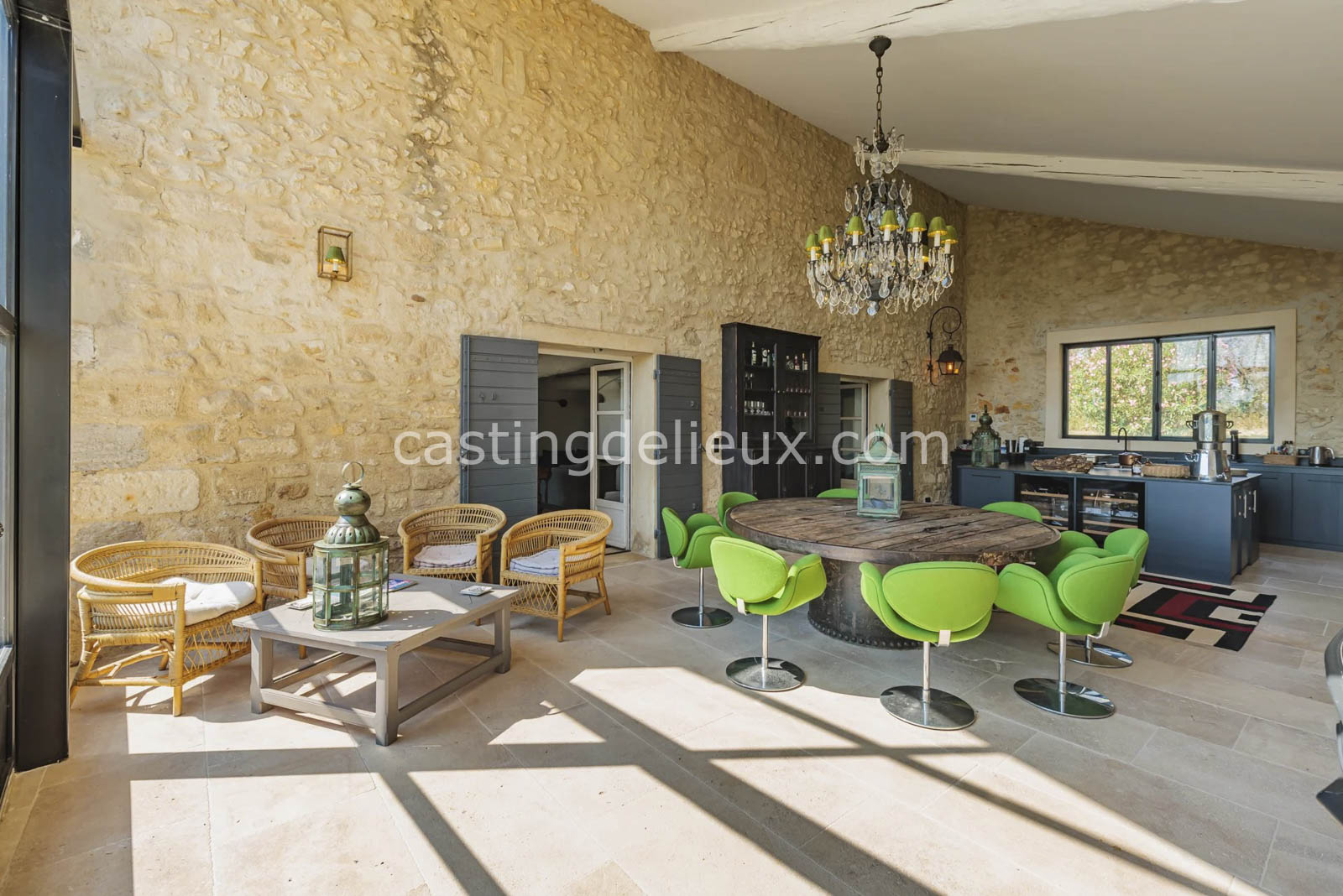 Mas provençal rénové situé au cœur des Alpilles, ce lieu de shooting offre une atmosphère lumineuse grâce à sa verrière et ses grands volumes. Il mêle éléments authentiques et décoration contemporaine, avec plusieurs espaces intérieurs et extérieurs adaptés aux productions photo et tournages.