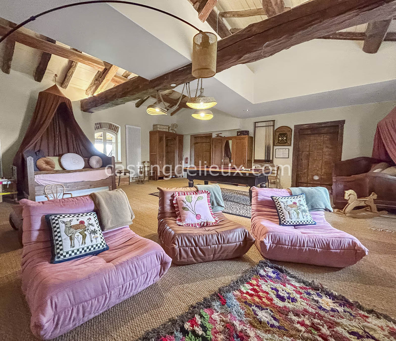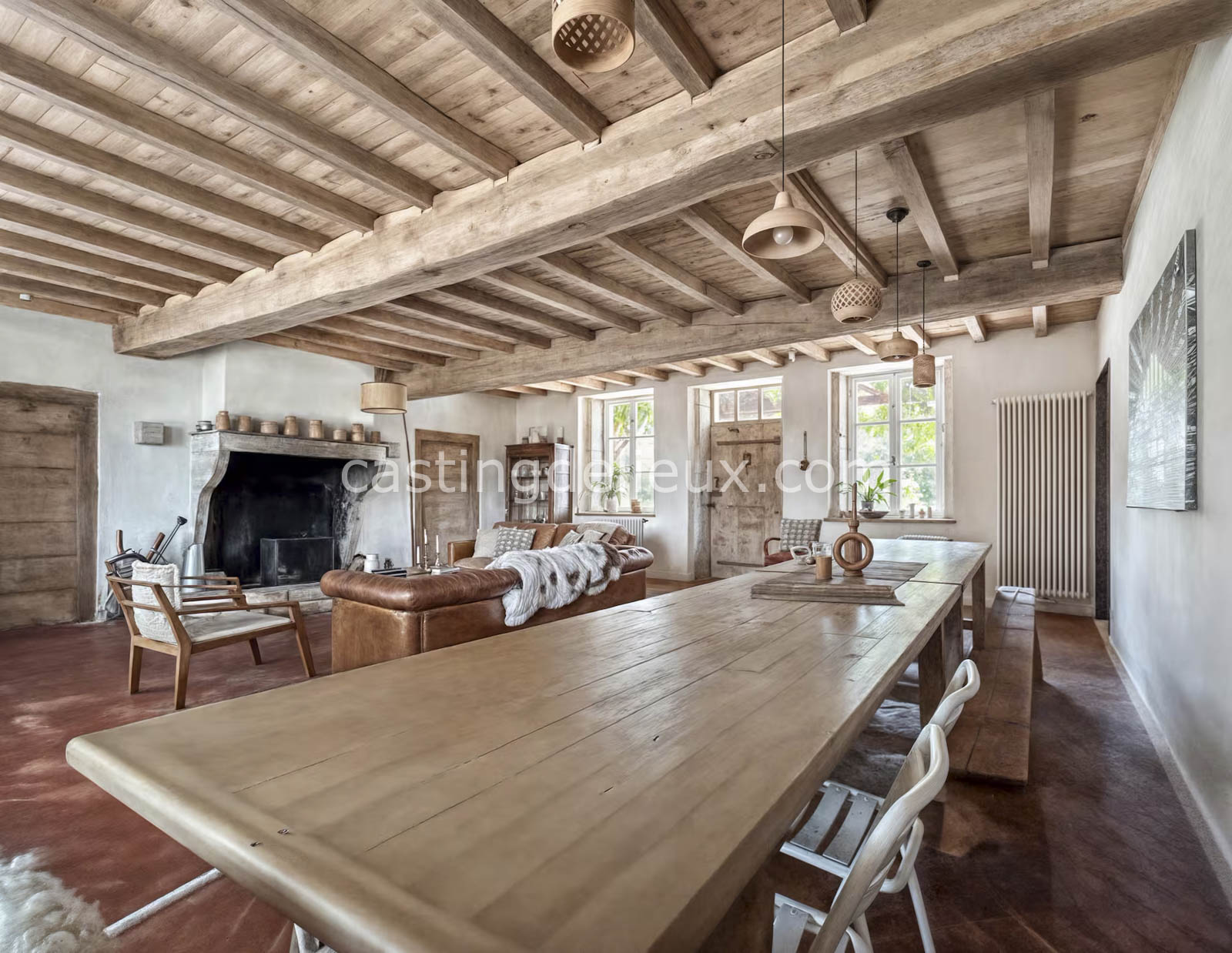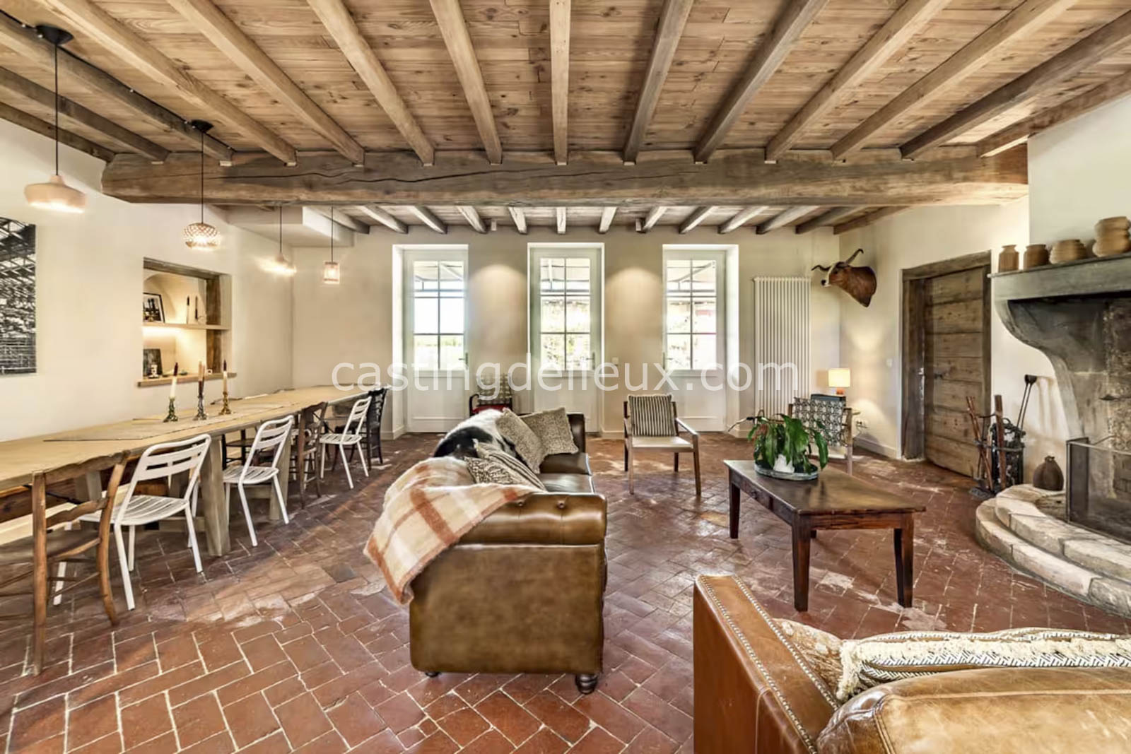 Située à proximité de Lyon, cette ferme bressane authentique de 280 m² offre un cadre champêtre et préservé, idéal pour les shootings photo et tournages. Elle se compose de vastes espaces de vie avec poutres apparentes, cheminée et matériaux anciens, ainsi que de 5 chambres et 3 salles de bain. Implantée sur un terrain arboré de 3 hectares, la propriété dispose de nombreux extérieurs exploitables : prairie, parc, terrasse, piscine et dépendances. L’accès est facilité pour les véhicules utilitaires avec stationnement sur place.