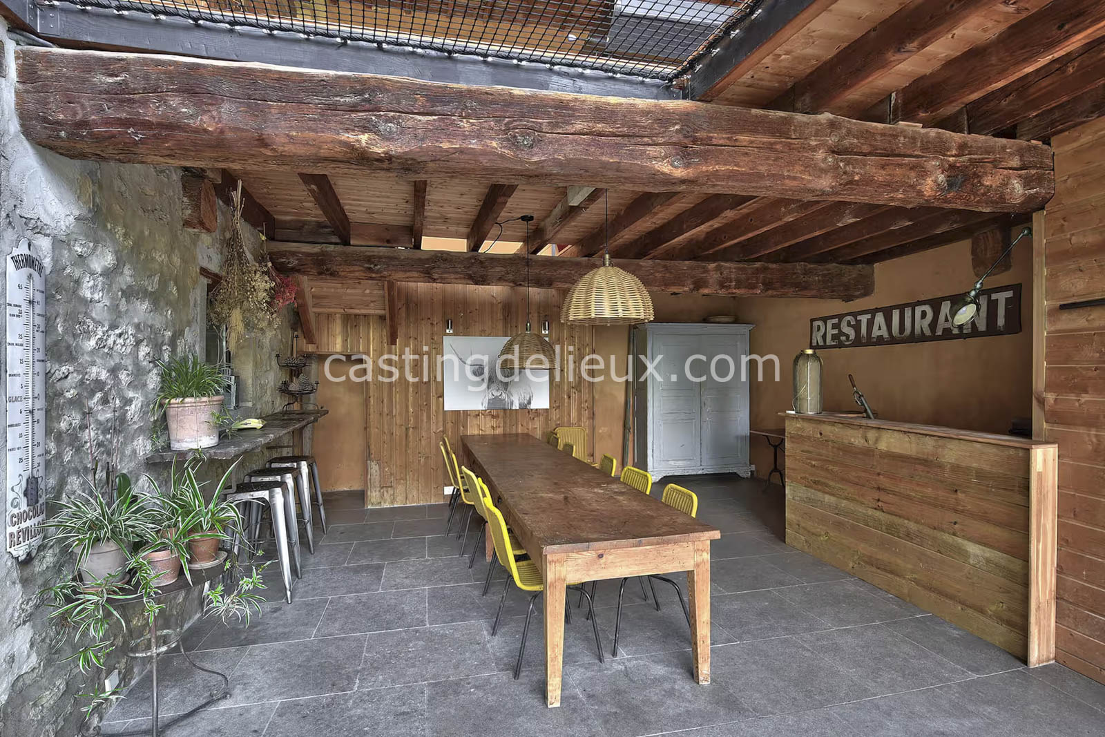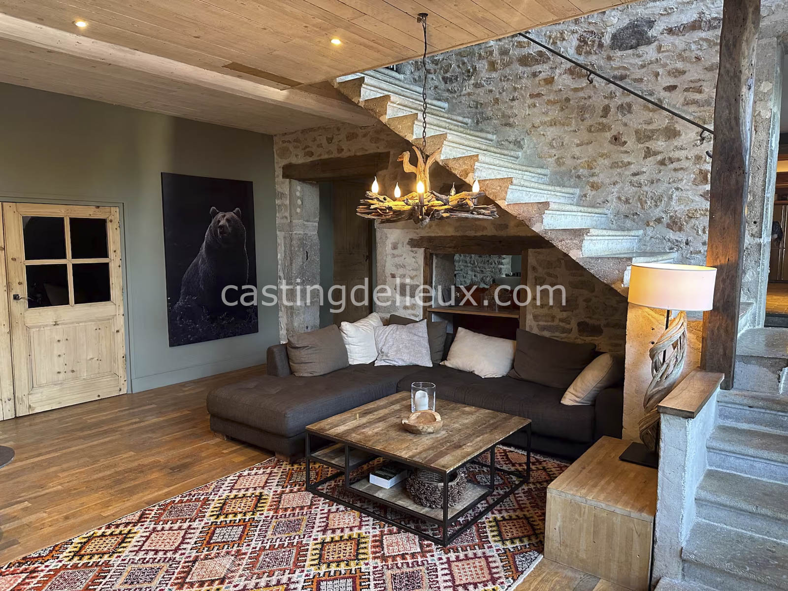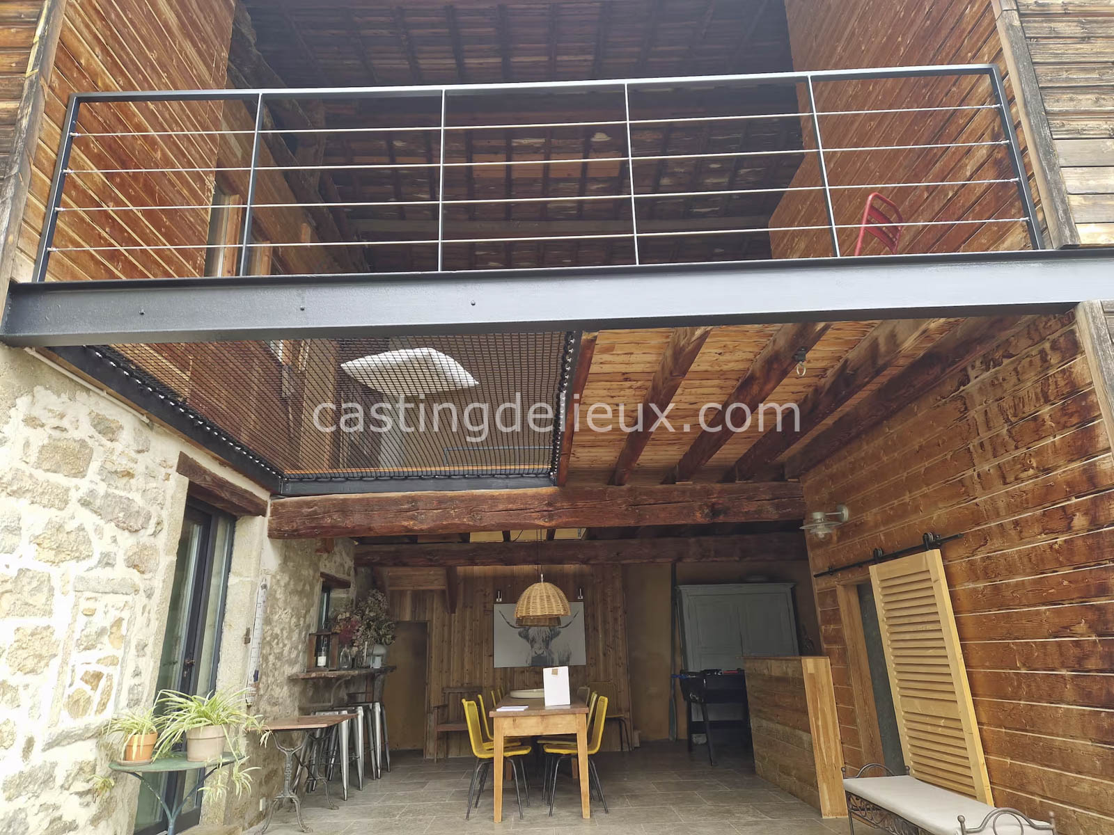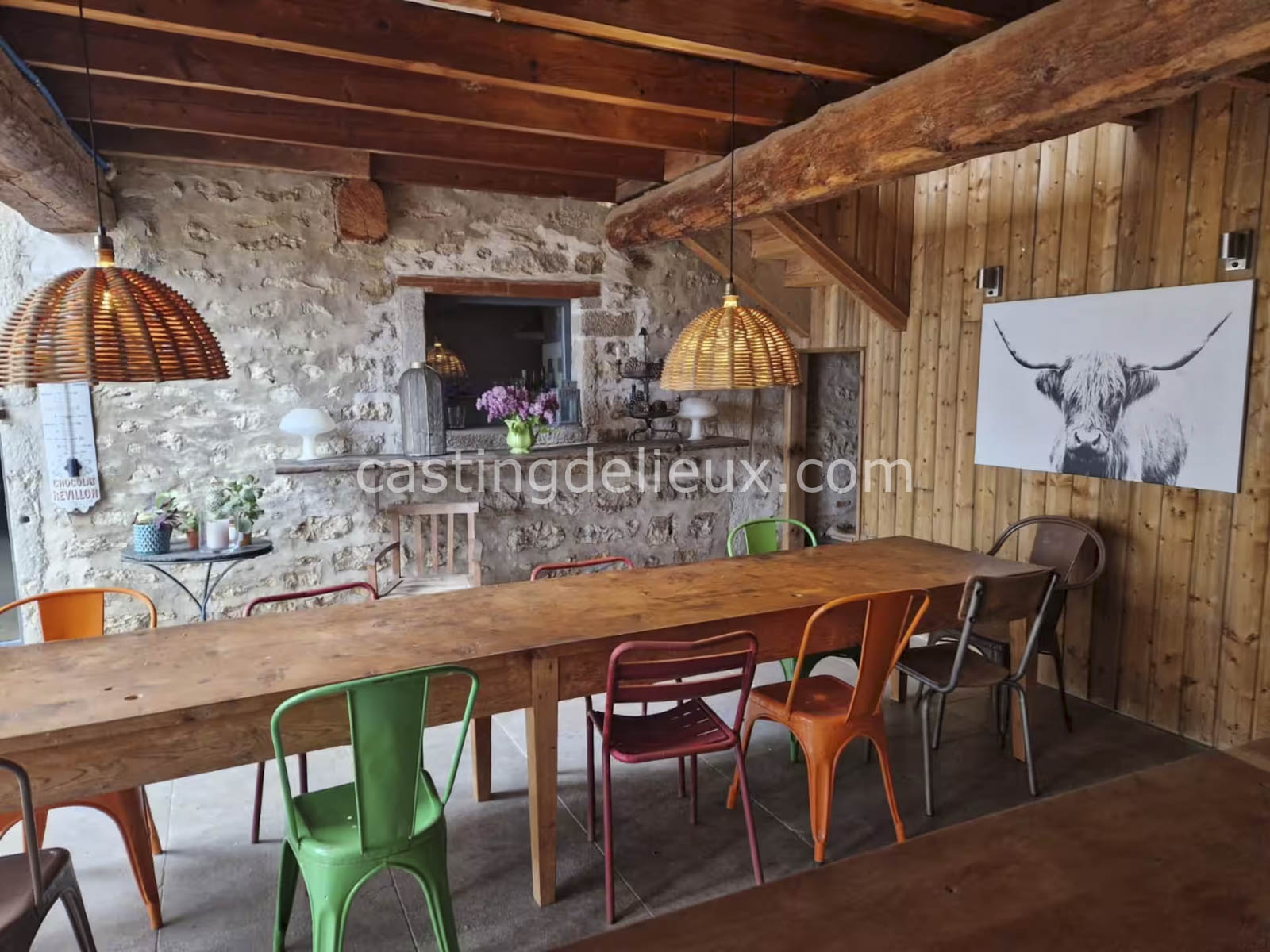 | Ambiance intérieure | Patio, Grande hauteur sous plafond, Verrière / baie vitrée, Pierre apparente, Sol bois / parquet, Tomettes / carrelage ancien, Cheminée, Charpente / poutres apparente, Ambiance rustique |