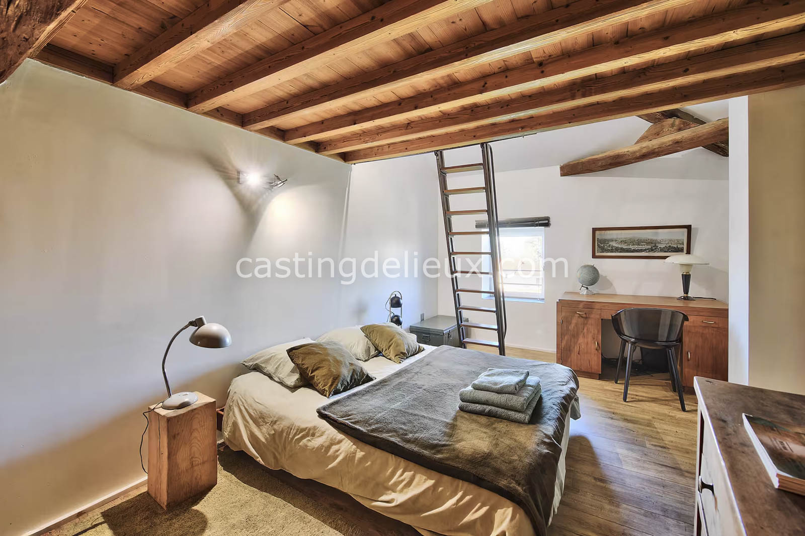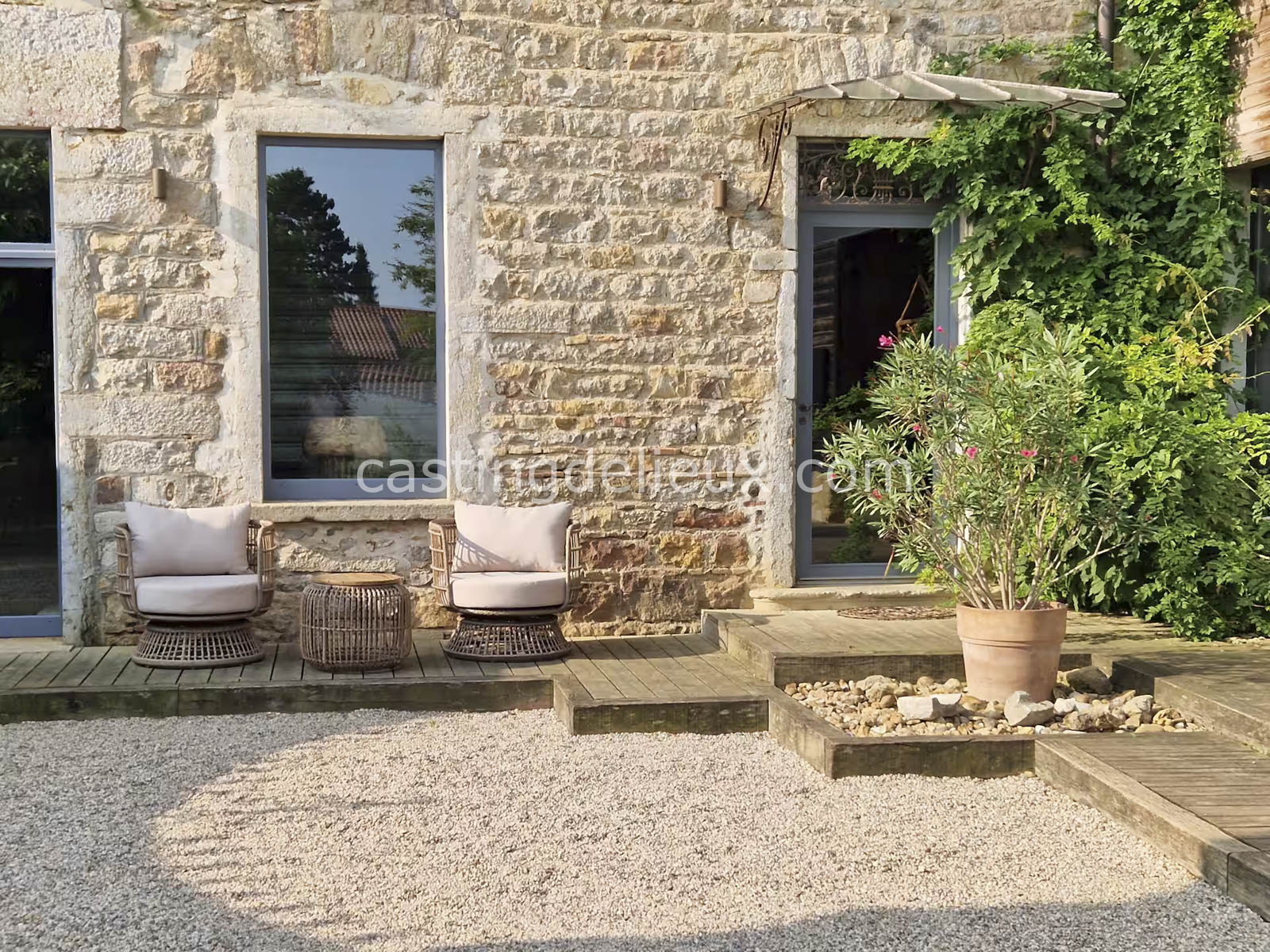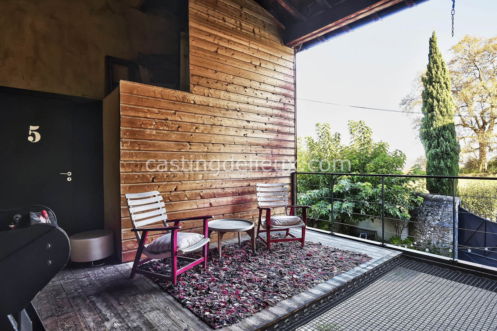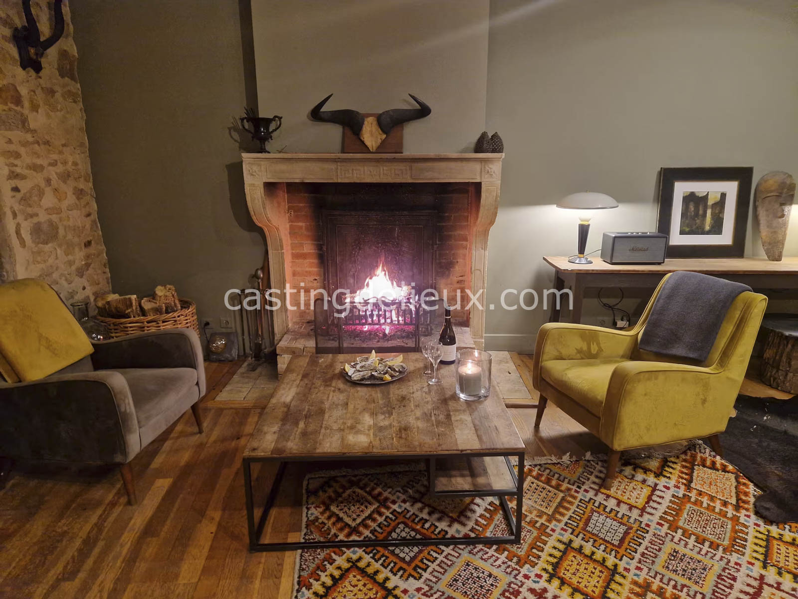 | Ambiance intérieure | Patio, Grande hauteur sous plafond, Verrière / baie vitrée, Pierre apparente, Sol bois / parquet, Tomettes / carrelage ancien, Cheminée, Charpente / poutres apparente, Ambiance rustique |