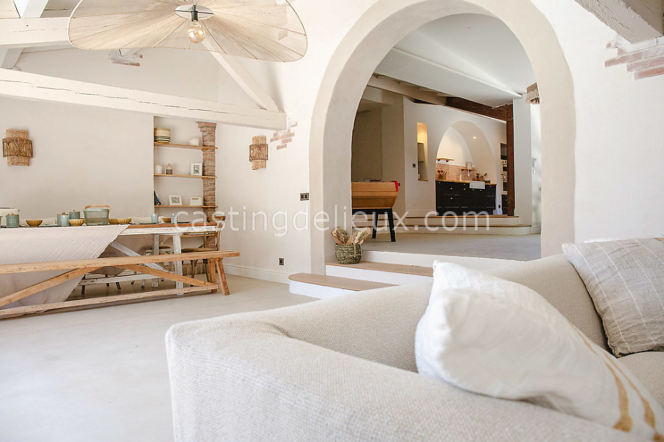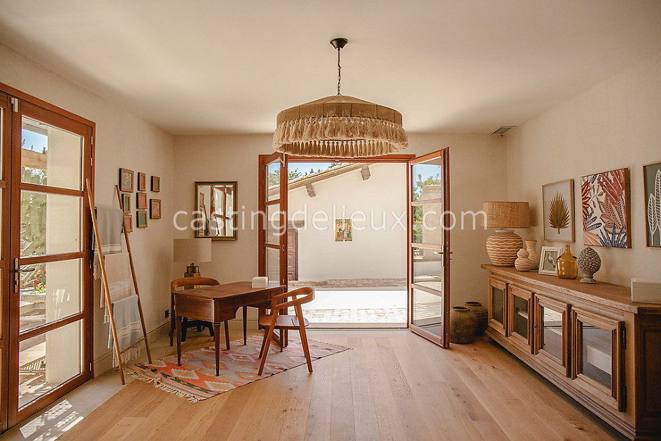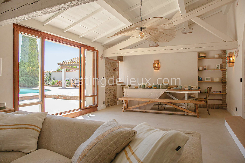 Le Mas est un domaine rénové composé d’un mas principal et d’une bergerie, totalisant sept chambres et de grands espaces de vie lumineux. Entre vergers et Méditerranée, le lieu offre 1500 m² d’extérieur, une piscine, une terrasse de 70 m² et plusieurs dépendances idéales pour les équipes. Parfait pour shootings photo, productions lifestyle, mode ou mobilier.